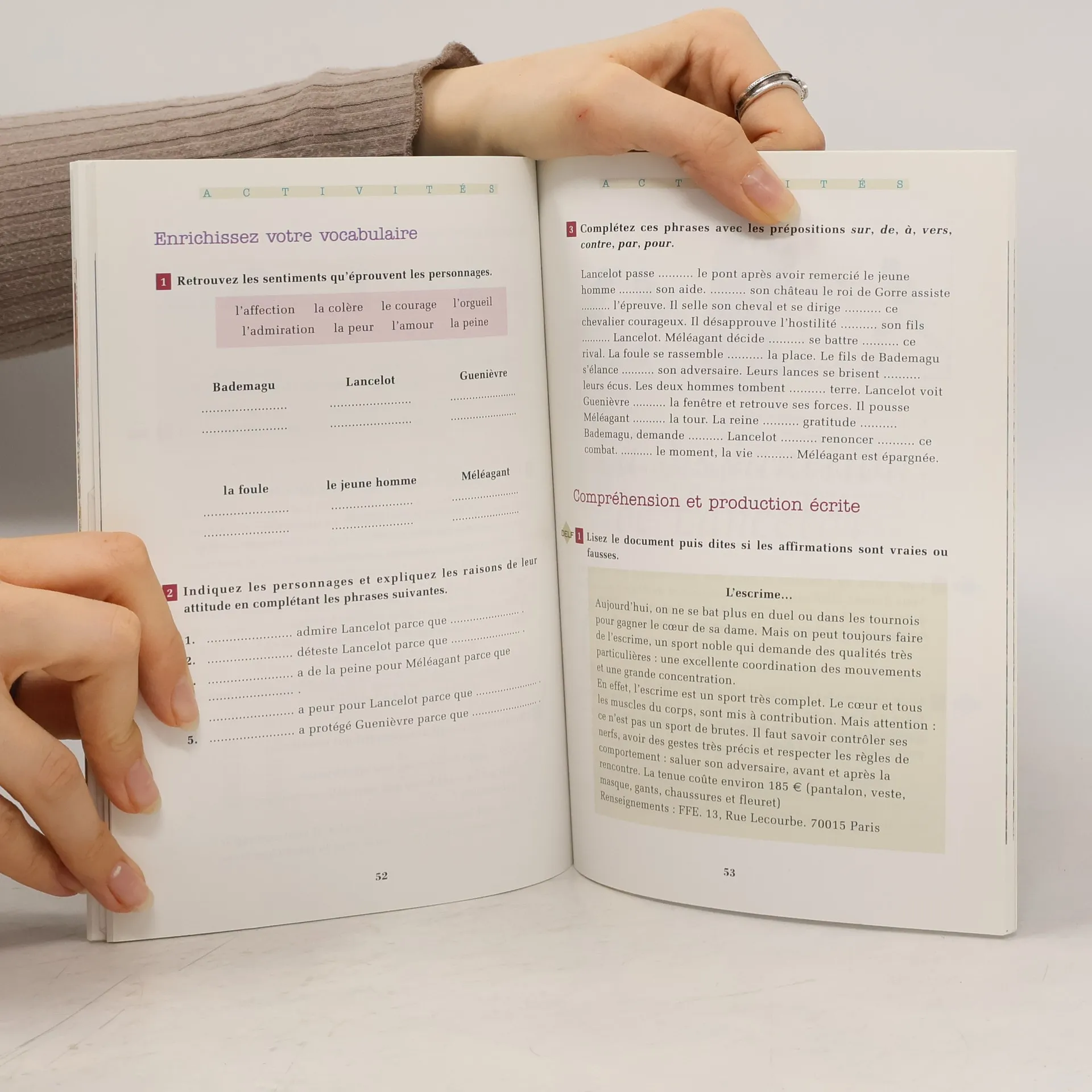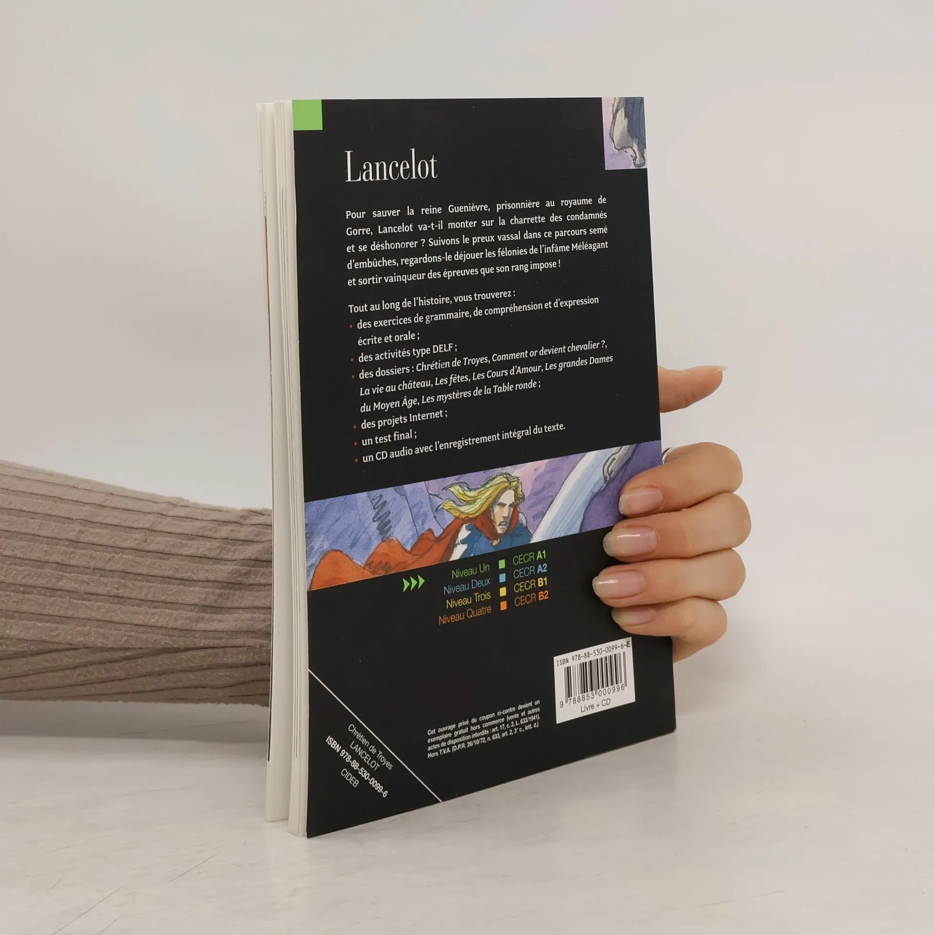LÉGENDE Le chevalier Lancelot va-t-il risquer le déshonneur pour sauver sa dame, la belle Guenièvre, et monter sur la charrette infamante des condamnés? Vous le découvrirez en lisant cette version adaptée du roman de Chrétien de Troyes. Grammaire: le superlatif, les verbes ‘vouloir’ et ‘pouvoir’, les pronoms interrogatifs, les adjectifs démonstratifs … Compétences: préparer et jouer une conversation téléphonique, défendre ses idées et opinions, écrire un bref message, tel qu’un courriel, analyser des cartes postales … Dossiers Comment on devient chevalier? La vie au château Les fêtes Les Cours d'Amour Les grandes Dames du Moyen Âge Les mystères de la Table ronde