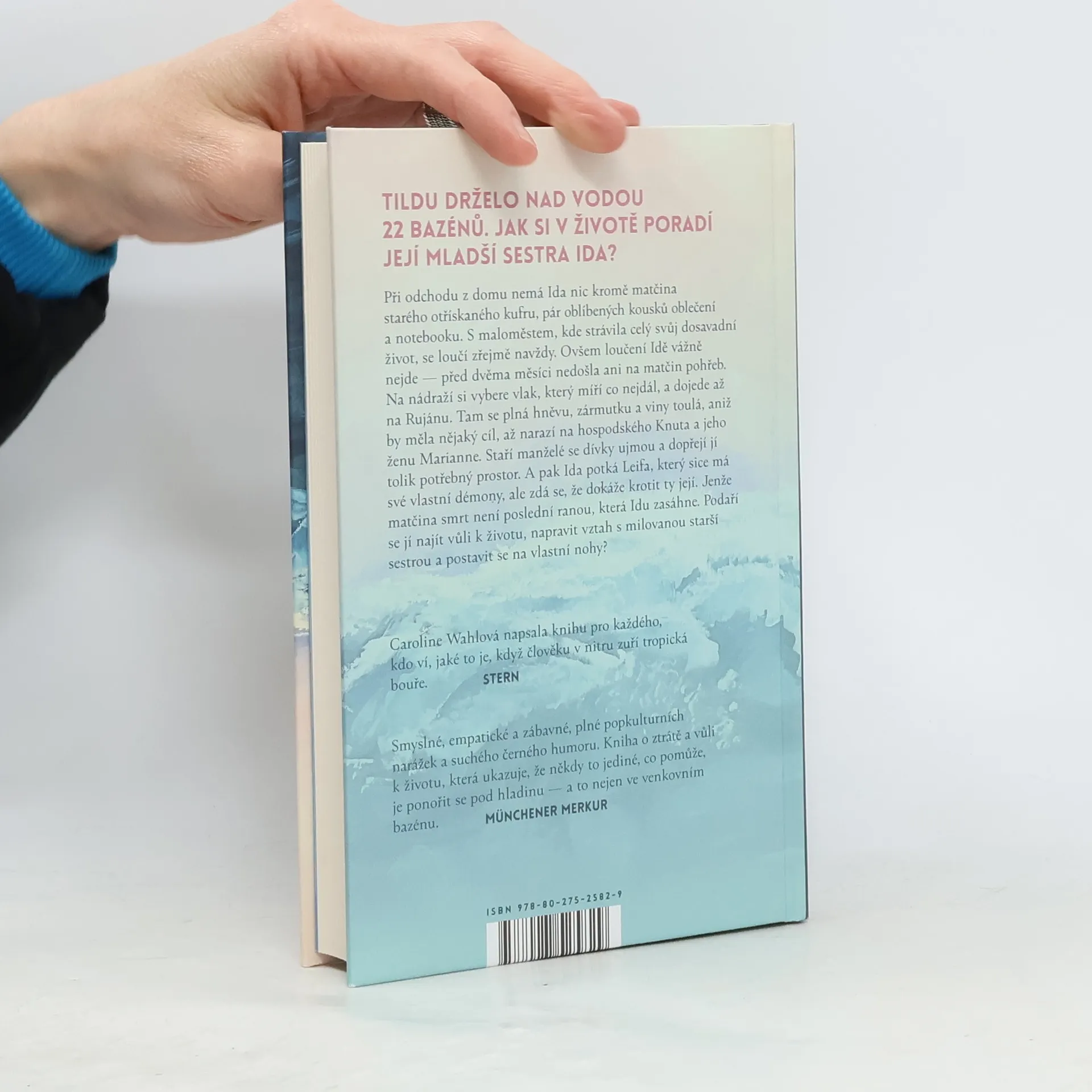 Tildu drželo nad vodou 22 bazénů. Jak si v životě poradí její mladší sestra Ida? Při odchodu z domu nemá Ida nic kromě matčina starého otřískaného kufru, pár oblíbených kousků oblečení a notebooku. S maloměstem, kde strávila celý svůj dosavadní život, se loučí zřejmě navždy. Ovšem loučení Idě vážně nejde — před dvěma měsíci nedošla ani na matčin pohřeb. Na nádraží si vybere vlak, který míří co nejdál, a dojede až na Rujánu. Tam se plná hněvu, zármutku a viny bezcílně toulá, až narazí na hospodského Knuta a jeho ženu Marianne. Staří manželé se dívky ujmou a dopřejí jí tolik potřebný prostor. A pak Ida potká Leifa, který sice má své vlastní démony, ale zdá se, že dokáže krotit ty její. Jenže matčina smrt není poslední ranou, která Idu zasáhne. Podaří se jí najít vůli k životu, napravit vztah s milovanou starší sestrou a postavit se na vlastní nohy?