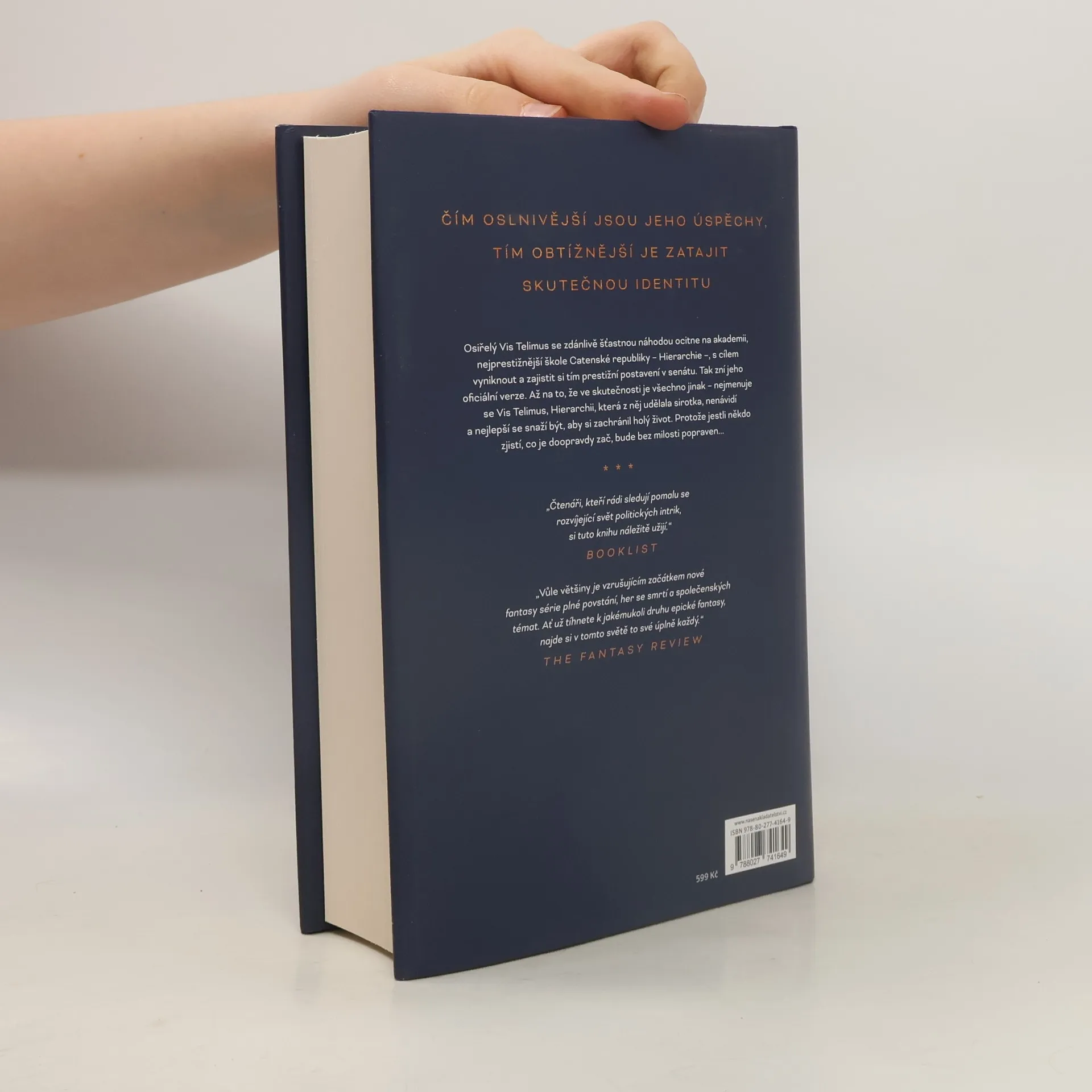 Říkám jim, že se jmenuji Vis Telimus. Říkám jim, že jsem před třemi lety osiřel po tragické nehodě a že jsem se na jejich nejprestižnější školu dostal čirou šťastnou náhodou. Říkám jim, že po promoci se s radostí připojím ke zbytku civilizované společnosti a umožním, aby mi odebírala sílu, energii a cílevědomost – jež nazývají Vůlí – a přispívala jimi těm u moci, jako to dělají miliony dalších. Jako to nakonec musí udělat každý. Říkám jim, že mezi ně patřím. Věří mi. Ale ve skutečnosti jsem byl na akademii poslán proto, abych našel vysvětlení. Vyřešil vraždu. Objevil dávnou zbraň. Odhalil tajemství, jež mohou republiku rozcupovat na kusy. A za žádnou cenu nebudu nikdy odevzdávat svou Vůli říši, která popravila mou rodinu. Nicméně abych přežil, musím se nejprve vyšplhat po akademickém žebříčku, usmívat se, přátelit se a předstírat, že jsem jedním z nich. Vyhrát. Protože jestli to nedokážu, ti, kdo se mě pokoušejí ovládat a znají mé skutečné jméno, už pro mě nebudou mít využití. A jestli Hierarchie zjistí, kdo doopravdy jsem, přijdu o život.