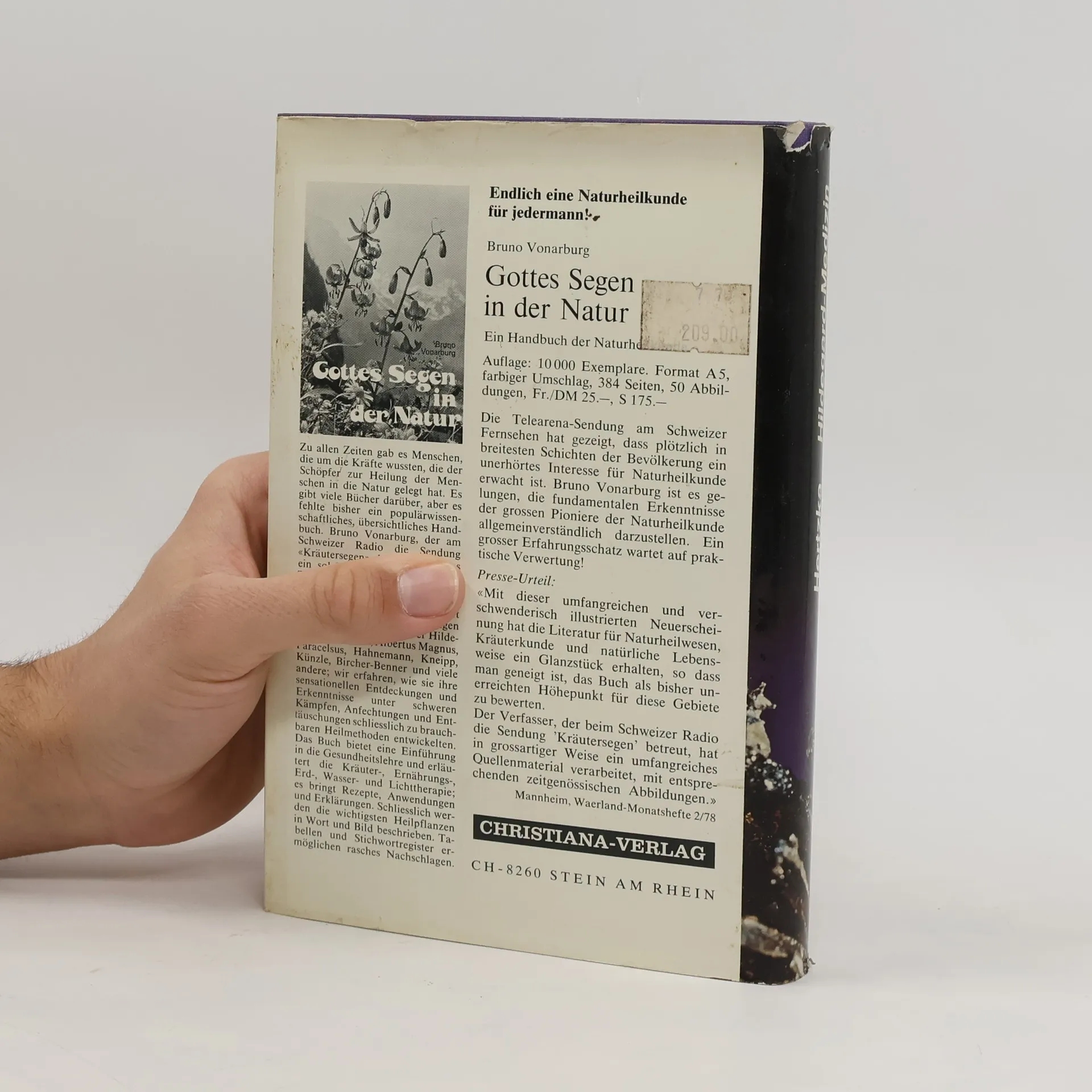 Die hl. Hildegard von Bingen (1098-1179), die berühmteste deutsche Schriftstellerin des Mittelalters, galt bisher allgemein als erste Ärztin und Naturforscherin Deutschlands. In einem geradezu klassischen Plädoyer wird in diesem Buch mit diesen falschen Klischees aufgräumt und nachgewiesen, dass Hildegard weder selbst experimentiert noch wissenschaftliche Erkenntnisse anderer verarbeitet hat. Hildegard hat alle ihre Erkenntnisse von Gott erhalten, sie durfte sie schauen in einem „lebendigen Licht“, einem Bildschirm sozusagen, wo sie die Geheimnisse der Natur und Übernatur ablesen konnte, um sie dann in lateinischer Sprache dem Mönch Volmar zu diktieren. Nicht das Außergewöhnliche ist daran das Aufregende, sondern die Tatsache, dass die Medizin Hildegards auch stimmt, wie Dr. Hertzka, der Verfasser dieses Werkes, bereits in seinem ersten Buch „So heilt Gott - Die Medizin der hl. Hildegard“ nachgewiesen hat. in diesem Buch werden die Argumente erhärtet und der unwiderlegbare Nachweis erbracht, dass wir durch Hildegard tatsächlich eine Medizin göttlichen Ursprungs besitzen. Man lese nur einmal das Kapitel über die Krebskrankheit, diese Geißel der Menschheit. Es geht aber in diesem Buch nicht in erster Linie um eine Rezeptsammlung der 2000 Naturheilmittel Hildegards, sondern um konzentrierte Kostproben, Modelle, Hinweise. Das Buch ist ein Geschenk für die vielen Hildegard-Freunde.