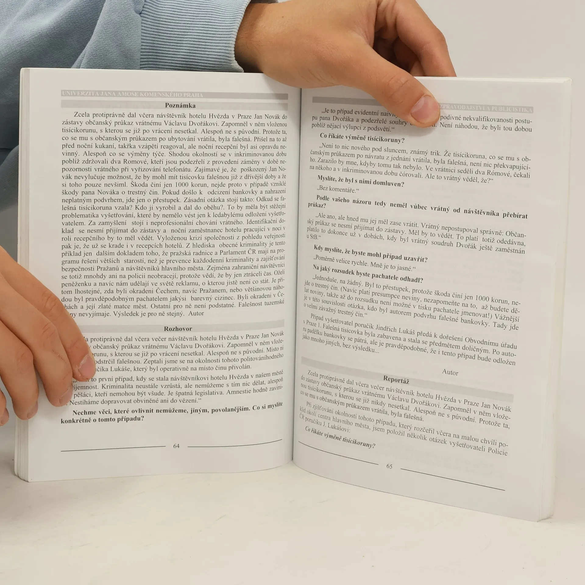 Publikace přináší přehled základních druhů žurnalistických sdělení (např. zpráva, článek, rozhovor, reportáž), podává jejich stručné charakteristiky. Obsahuje příklady jednotlivých žánrů (ukázky zpracovávají stejné téma). Stručně seznamuje se vznikem a vývojem agenturního zpravodajství a v závěrečné kapitole informuje o vývoji i současné podobě rozhlasového a televizního vysílání. Učební text shrnuje poznatky z oblasti masové komunikace, zpravodajství a publicistiky. Soustřeďuje se zejména na typologii novinářských žánrů.