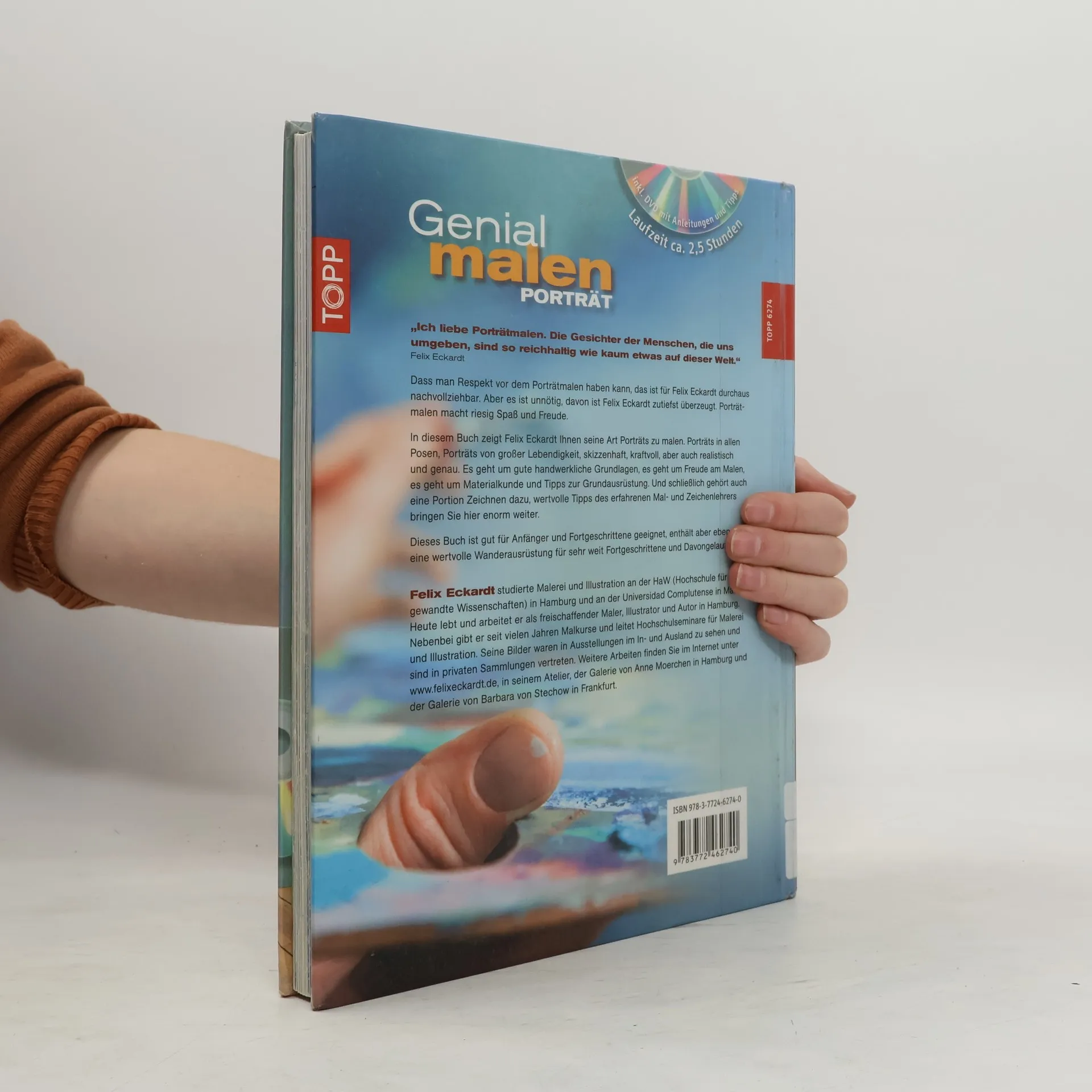 Anleitung für Hobbykünstler, die schon Erfahrungen mit Acrylfarbe gesammelt haben, ins Porträtieren von Menschen mit einer ausführlichen DVD, die den Inhalt des Buchs in abgewandelter Form wiederholt