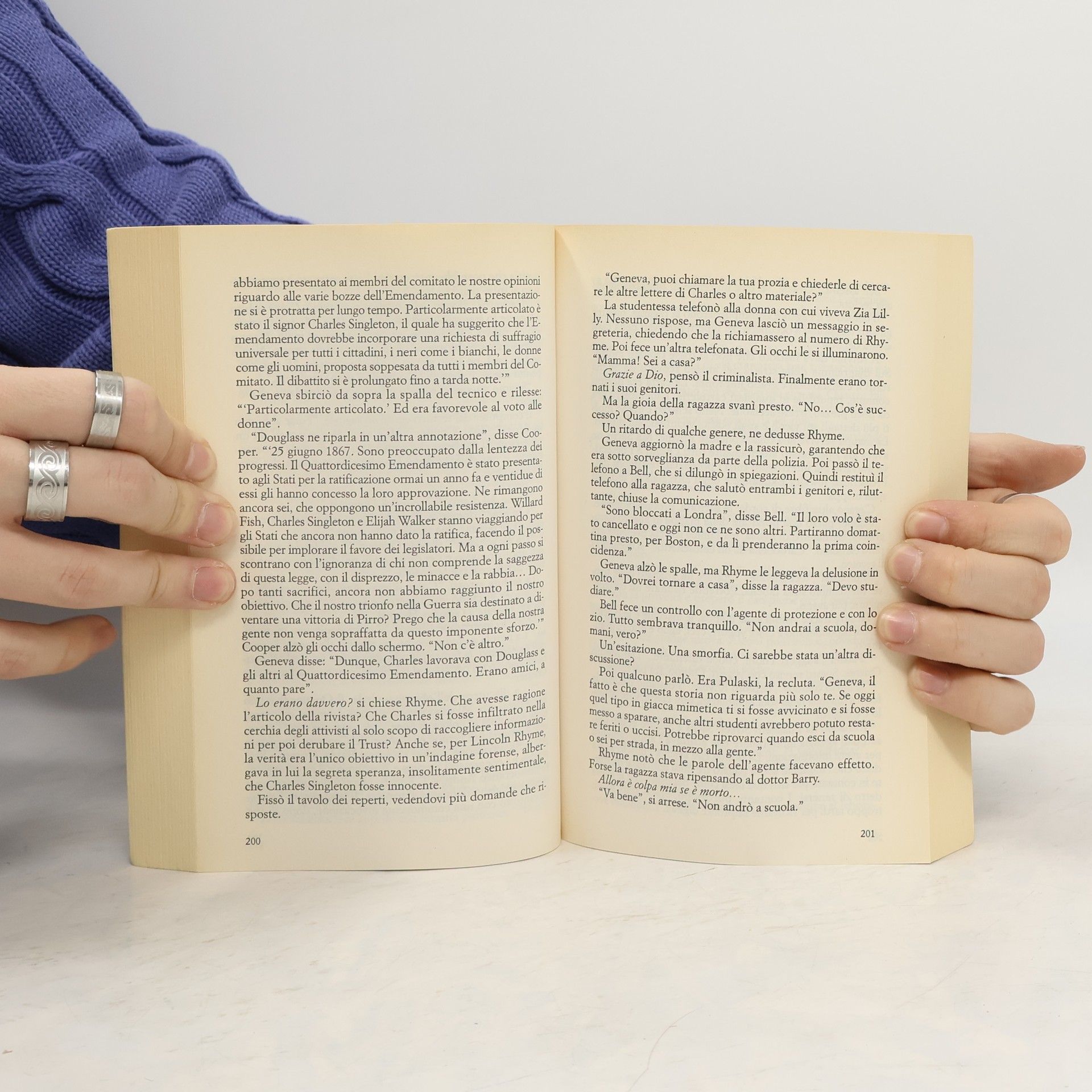 Harlem, biblioteca del Museo afroamericano. La sedicenne Geneva Settle sta cercando notizie di un suo antenato vissuto nella metà dell'Ottocento che, ex schiavo, si era battuto per i diritti civili della gente di colore per poi finire misteriosamente in carcere. Mentre la ragazza è concentrata nella ricerca, un uomo si avventa alle sue spalle e tenta di violentarla. Nonostante sembri un tentativo di stupro, Lincoln Rhyme inizia a indagare con l'aiuto di Amelia Sachs. In effetti, l'uomo ha un obiettivo più impegnativo: uccidere la povera Geneve. E per far questo non esita a uccidere il bibliotecario che forse ha visto qualcosa. Il primo indizio che Rhyme ha a disposizione? La dodicesima carta dei tarocchi, l'Impiccato.