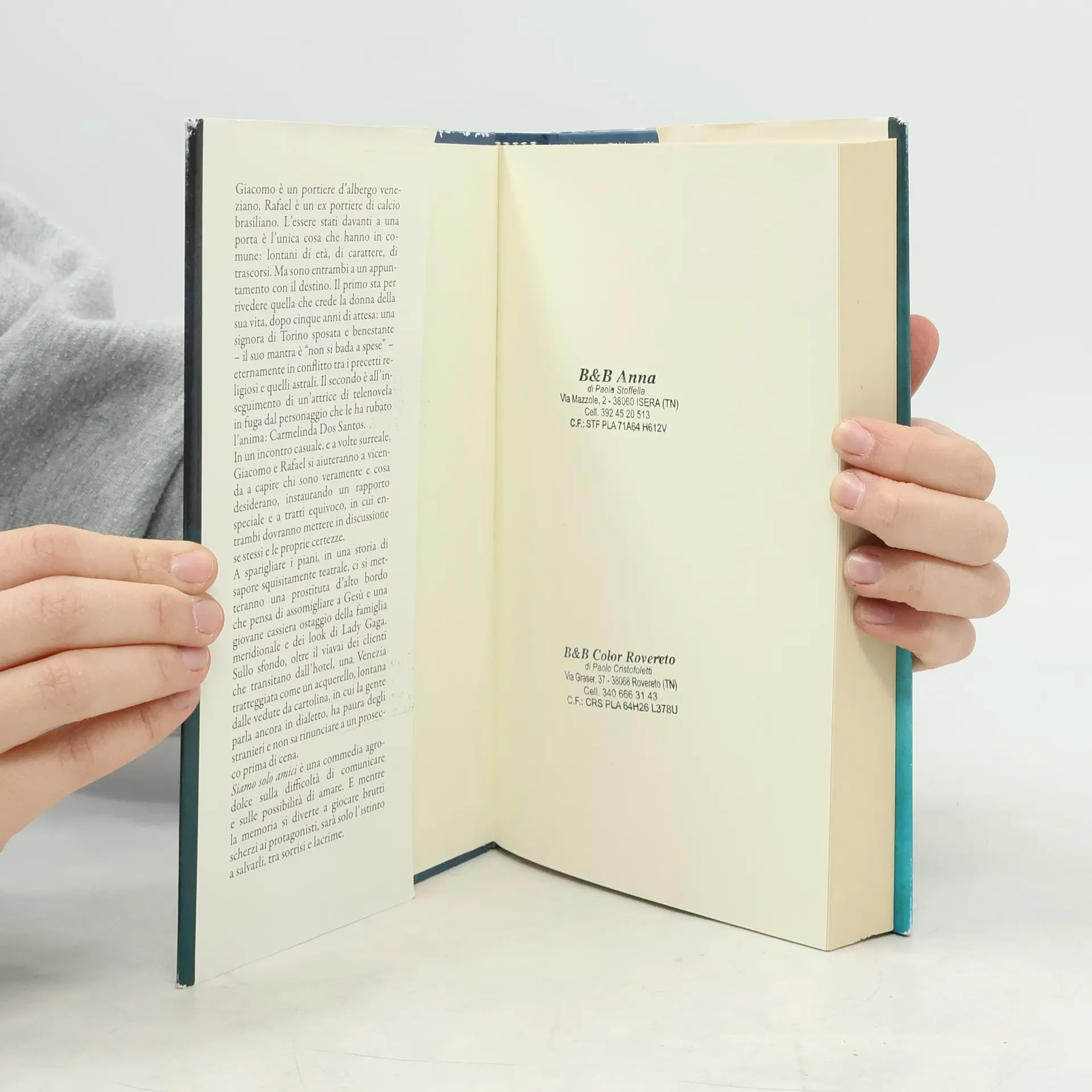 "Giacomo è un portiere d'albergo veneziano. Rafael è un ex-portiere di calcio brasiliano. Sono entrambi a un appuntamento con il destino ma l'essere stati davanti a una porta è l'unica cosa che hanno in comune. Il primo, dopo cinque anni di attesa, sta per rivedere la donna della sua vita: una signora sposata il cui mantra è "non si bada a spese", eternamene in conflitto tra i precetti religiosi e quelli astrali. Il secondo insegue un'attrice di telenovela, in fuga dal personaggio che le ha rubato l'anima. In un incontro fortuito e surreale Giacomo e Rafael instaureranno un rapporto singolare a tratti equivoco, che li porterà a capire chi sono e cosa desiderano. A sparigliare i piani, in una storia squisitamente teatrale, ci si metteranno altre due donne: una prostituta d'alto bordo che pensa di assomigliare a Gesù, e una giovane cassiera ostaggio della famiglia meridionale e dei look di Lady Gaga. Sullo sfondo, oltre il via vai dei clienti dell'hotel, una Venezia tratteggiata come un acquerello, lontana dalle cartoline, in cui la gente parla ancora in dialetto, ha paura degli stranieri e non sa rinunciare a un prosecco prima di cena."--Cover