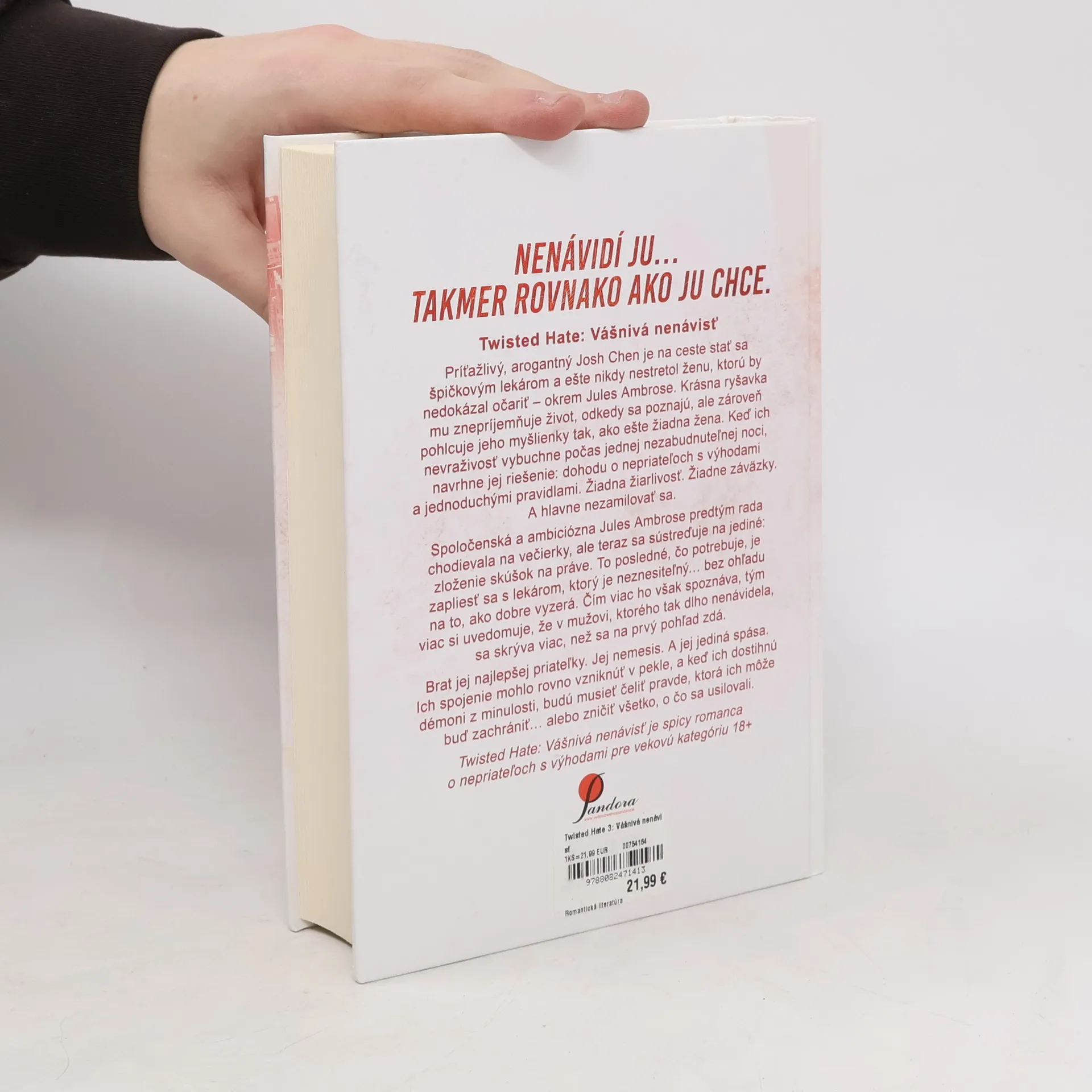 Nenávidí ju… takmer rovnako ako ju chce. Príťažlivý, arogantný Josh Chen je na ceste stať sa špičkovým lekárom a ešte nikdy nestretol ženu, ktorú by nedokázal očariť – okrem Jules Ambrose. Krásna ryšavka mu znepríjemňuje život, odkedy sa poznajú, ale zároveň pohlcuje jeho myšlienkytak, ako ešte žiadna žena. Keď ich nevraživosť vybuchne počas jednej nezabudnuteľnej noci, navrhne jej riešenie: dohodu o nepriateľoch s výhodami a jednoduchými pravidlami. Žiadna žiarlivosť. Žiadne záväzky. A hlavne nezamilovať sa. Spoločenská a ambiciózna Jules Ambrose predtým rada chodievala na večierky, ale teraz sa sústreďuje na jediné: zloženie skúšok na práve. To posledné, čo potrebuje, je zapliesť sa s lekárom, ktorý je neznesiteľný… bez ohľadu na to, ako dobre vyzerá. Čím viac ho však spoznáva, tým viac si uvedomuje, že v mužovi, ktorého tak dlho nenávidela, sa skrýva viac, než sa na prvý pohľad zdá. Brat jej najlepšej priateľky. Jej nemesis. A jej jediná spása. Ich spojenie mohlo rovno vzniknúť v pekle, a keď ich dostihnú démoni z minulosti, budú musieť čeliť pravde, ktorá ich môže buď zachrániť… alebo zničiť všetko, o čo sa usilovali.