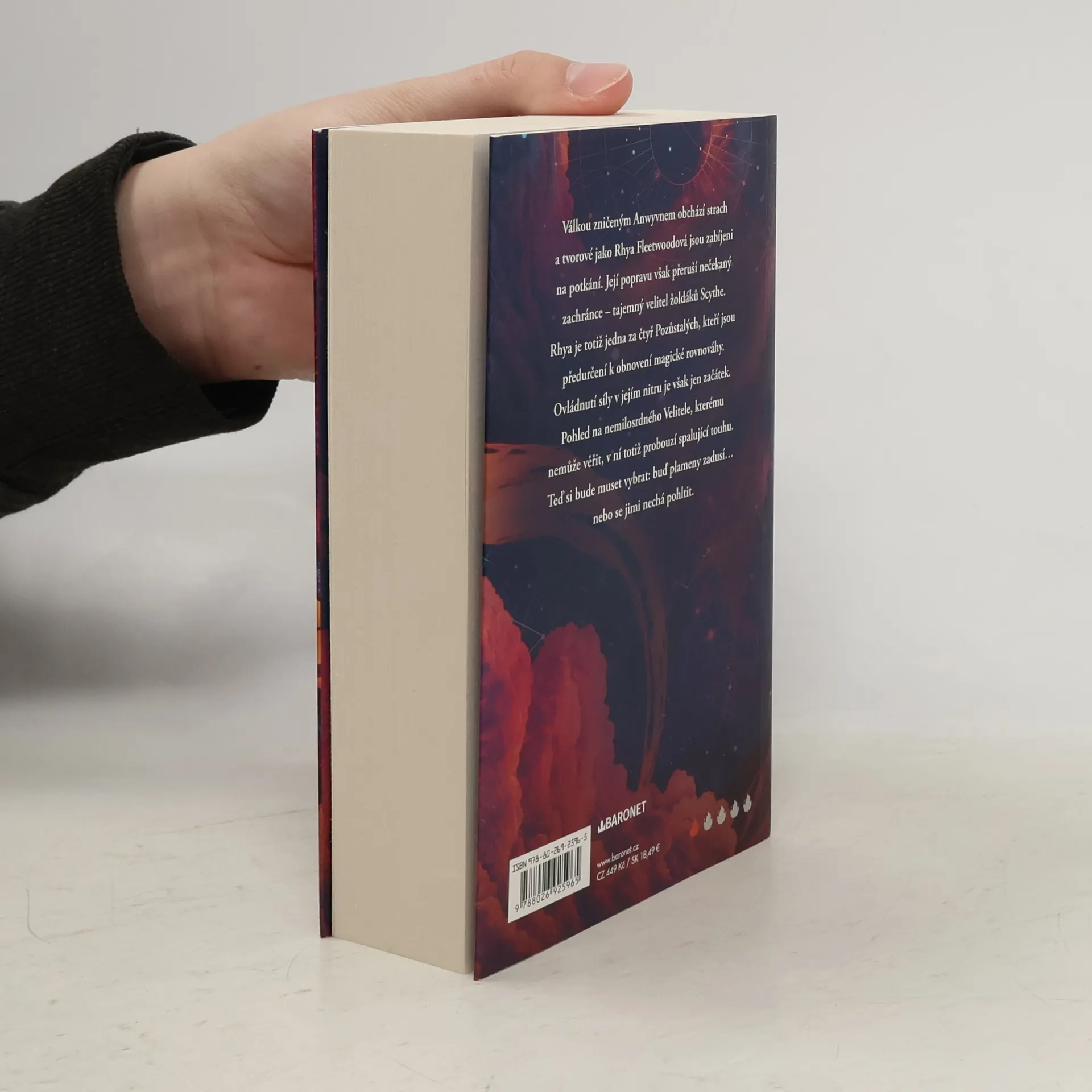 Stačí jiskra… a celý svět skončí v ohni. Žhavá romantasy o vášni a předurčení. Válkou zničeným Anwyvnem obchází strach a tvorové jako Rhya Fleetwoodová jsou zabíjeni na potkání. Její popravu však přeruší nečekaný zachránce – tajemný velitel žoldáků Scythe. Rhya je totiž jedna za čtyř Pozůstalých, kteří jsou předurčení k obnovení magické rovnováhy. Ovládnutí síly v jejím nitru je však jen začátek. Pohled na nemilosrdného Velitele, kterému nemůže věřit, v ní totiž probouzí spalující touhu. Teď si bude muset vybrat: buď plameny zadusí... nebo se jimi nechá pohltit.