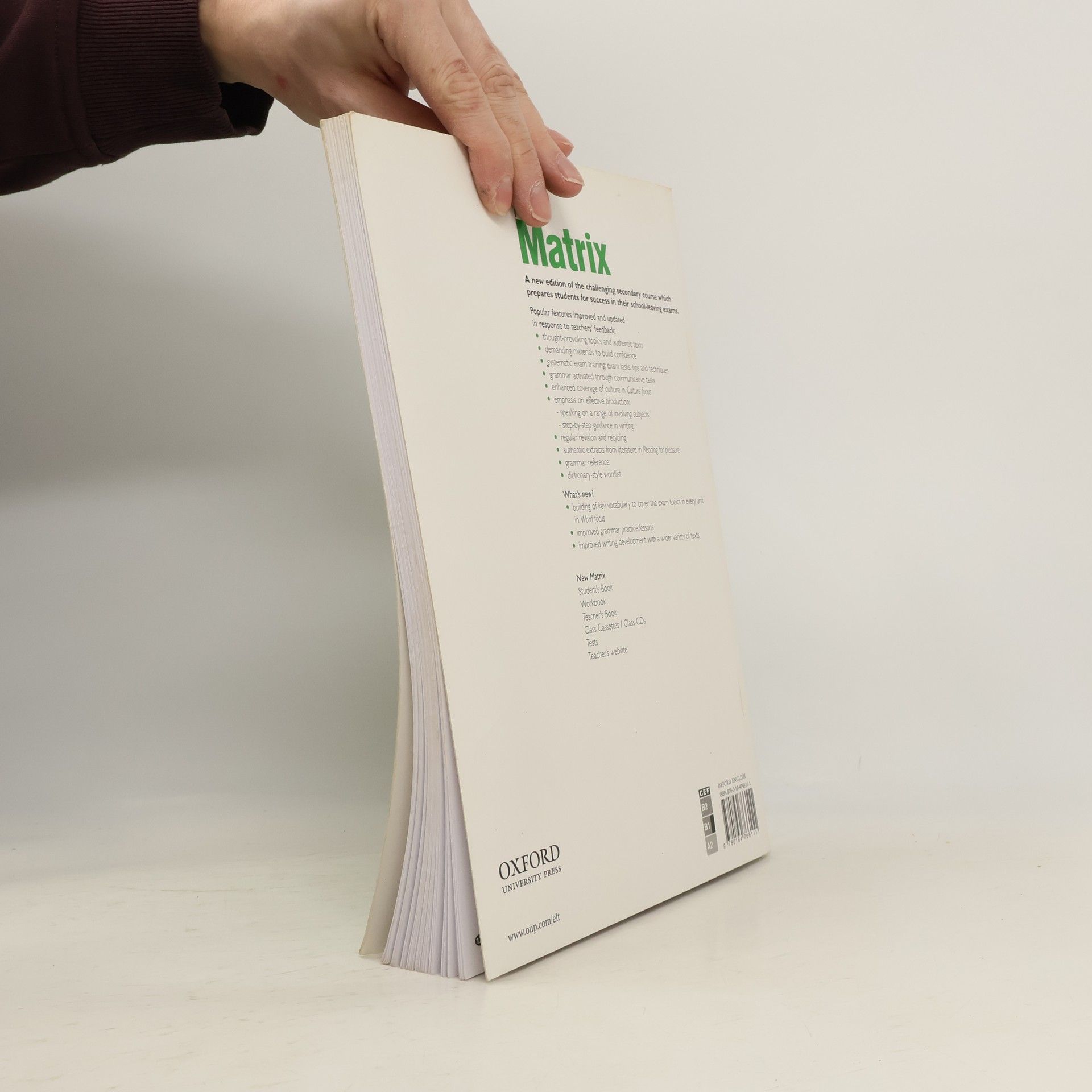 Popular features improved and updated in response to feedback from Matrix users. Systematic building of key vocabulary to cover up-to-date exam topics. Effective production: speaking practice in every lesson on a wide range of topics, and step-by-step guidance for writing a variety of text types. Grammar knowledge checked and activated in use. Strong focus on culture. Exam tips, techniques, and practice of exam-type tasks to give students confidence in the exam.