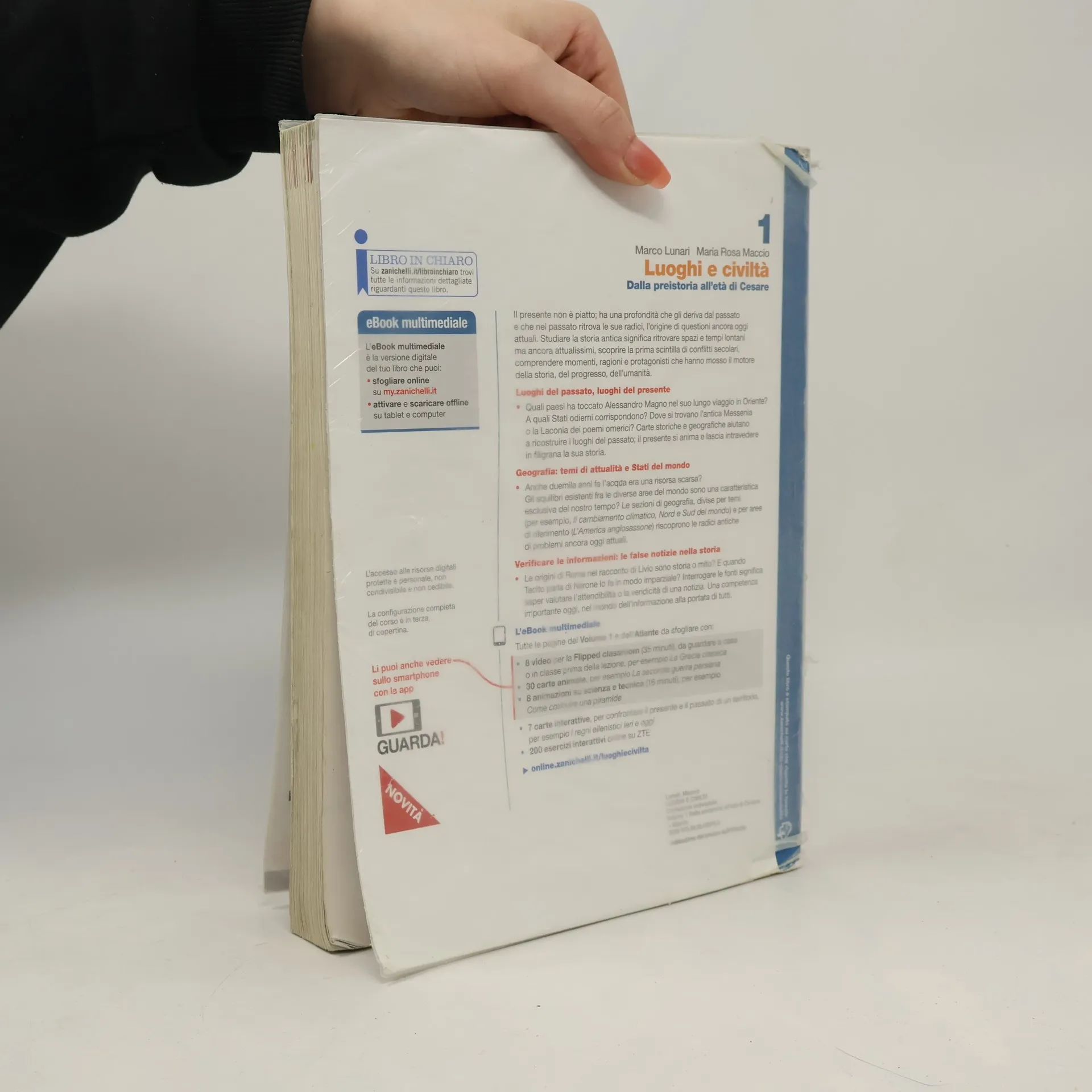 Il presente non è piatto; ha una profondità che gli deriva dal passato e che nel passato ritrova le sue radici, l’origine di questioni ancora oggi attuali. Studiare la storia antica significa ritrovare spazi e tempi lontani ma ancora attualissimi, scoprire la prima scintilla di conflitti secolari, comprendere momenti, ragioni e protagonisti che hanno mosso il motore della storia, del progresso, dell’umanità. Quali paesi ha toccato Alessandro Magno nel suo lungo viaggio in Oriente? A quali Stati odierni corrispondono? Dove si trovano l’antica Messenia o la Laconia dei poemi omerici? Carte storiche e geografiche aiutano a ricostruire i luoghi del passato; il presente si anima e lascia intravedere in filigrana la sua storia. Anche duemila anni fa l’acqua era una risorsa scarsa? Gli squilibri esistenti fra le diverse aree del mondo sono una caratteristica esclusiva del nostro tempo? Le sezioni di geografia, divise per temi (per esempio, Il cambiamento climatico, Nord e Sud del mondo) e per aree di riferimento (L’America anglosassone) riscoprono le radici antiche di problemi ancora oggi attuali. Le origini di Roma nel racconto di Livio sono storia o mito? E quando Tacito parla di Nerone lo fa in modo imparziale? Interrogare le fonti significa saper valutare l’attendibilità o la veridicità di una notizia. Una competenza importante oggi, nel mondo dell’informazione alla portata di tutti.