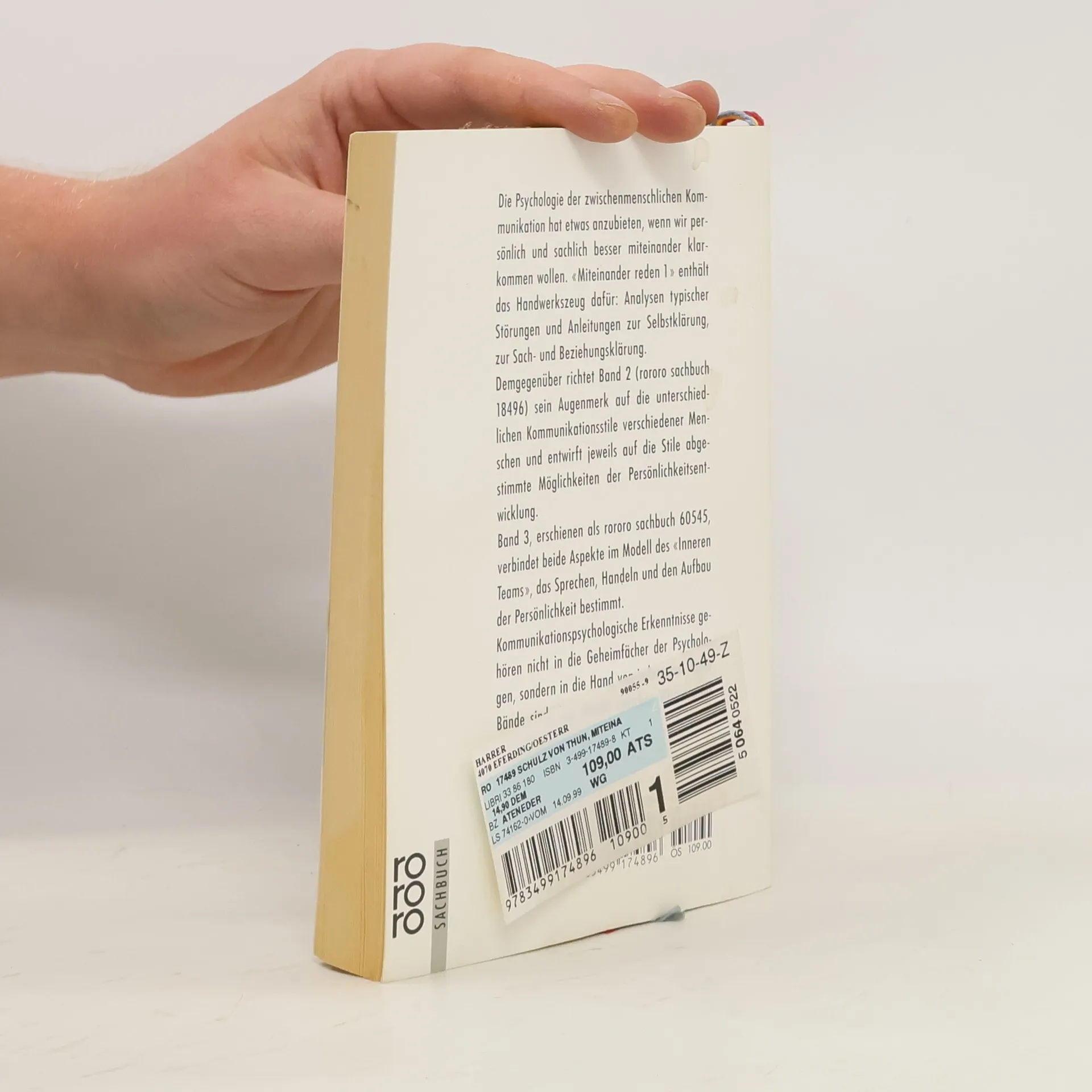 Kommunikationspsychologische Erkenntnisse dienen zwar Therapeuten als Instrumente, sie gehören jedoch nicht in die Geheimfächer der Psychologie, sondern in die Hand von jedermann. Als Brücke zwischen Wissenschaft und Lebenswelt sind beide Bände verständlich geschrieben, mit vielen Beispielen, Abbildungen und Übungen. Manches kann schiefgehen, wenn wir miteinander reden. Geglückte Kommunikation hängt nicht nur vom "guten Willen" ab, sondern auch von der Fähigkeit zu durchschauen, welche seelischen Vorgänge und zwischenmenschlichen Verwicklungen ins Spiel kommen, wenn Ich und Du aneinandergeraten. Die Psychologie der zwischenmenschlichen Kommunikation hat etwas anzubieten, wenn wir persönlich und sachlich besser miteinander klarkommen wollen. "Miteinander reden 1" enthält das Handwerkszeug dafür Analysen typischer Störungen und Anleitungen zur Selbstklärung, zur Sach- und Beziehungsklärung. Wenn jemand etwas von sich gibt, dann enthält seine Mitteilung vier psychisch bedeutsame Seiten Selbstoffenbarung, Sachinhalt, Beziehungshinweis und Appell. Von den typischen Problemen, die mit jedem dieser vier Aspekte verbunden sind, greift dieser Band diejenigen auf, die uns alle mehr oder minder stark beschäftigen. Demgegenüber richtet Band 2 sein Augenmerk auf die unterschiedlichen Kommunikationsstile verschiedener Menschen und entwirft jeweils auf die Stile abgestimmte Möglichkeiten der Persönlichkeitsentwicklung.