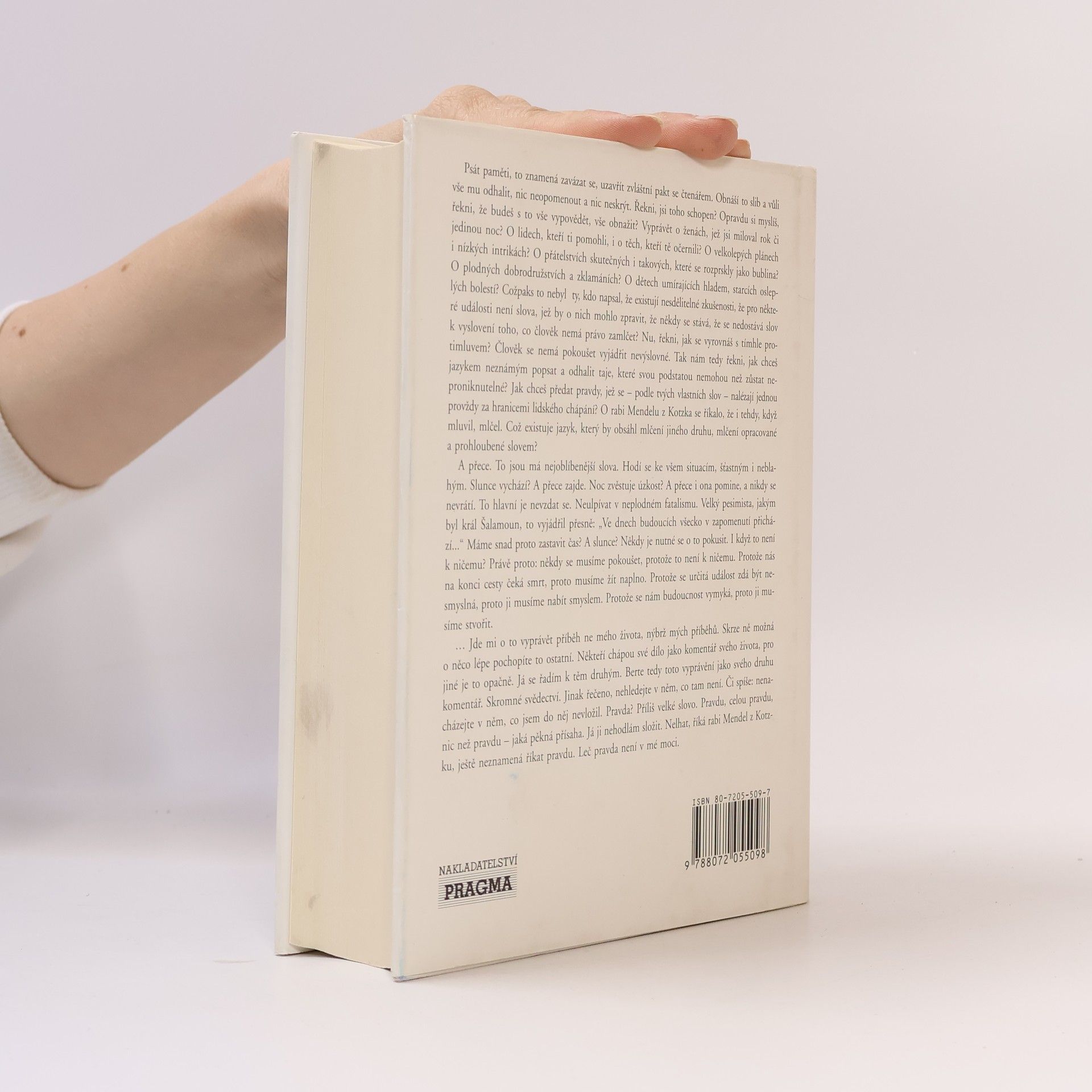 Nositel Nobelovy ceny míru, svědek mrtvých a obhájce utiskovaných Židů i dalších obětí vypráví příběhy svého života. Wiesel má svá základní témata: židovský mysticismus a utrpení Židů v diaspoře, zejména tragédii 2. světové války - holocaust. Jeho neúnavná snaha, aby se nezapomnělo na válečné hrůzy, na oběti a viníky, jej vede i do sporu s reprezentanty státu Izrael.
