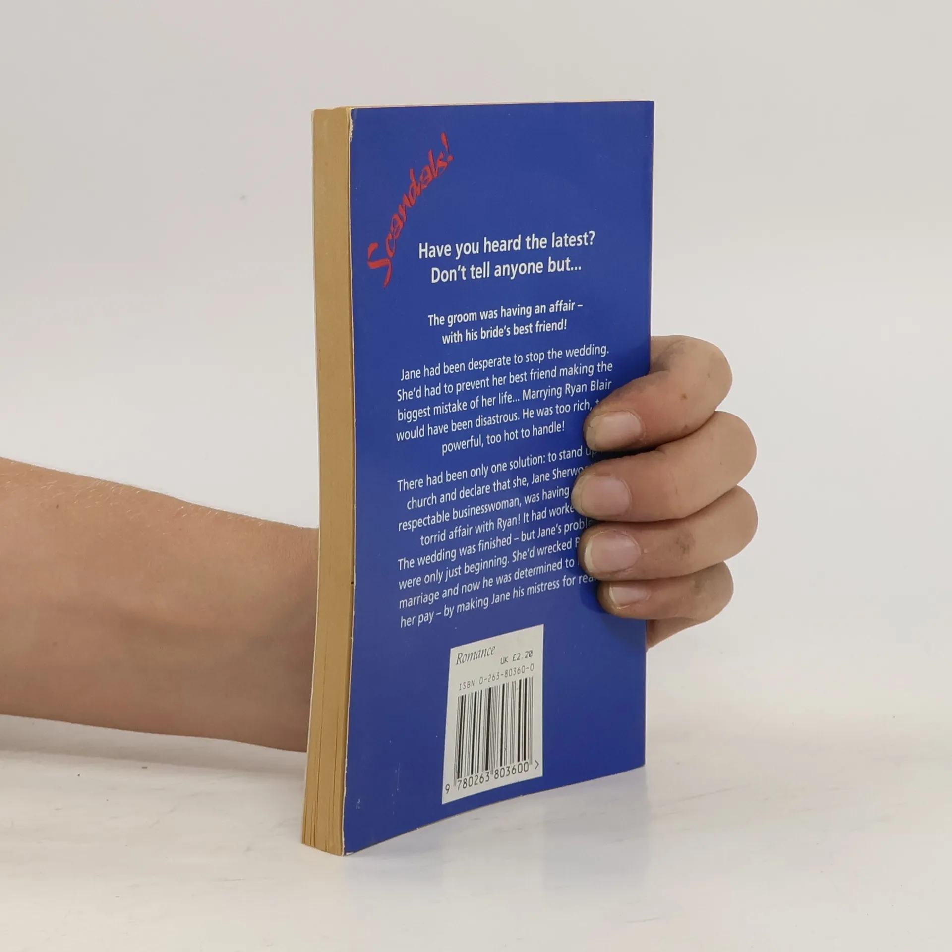 Have you heard the latest? Don't tell anyone but... The groom was having an affair - with his bride's best friend! Jane had been desperate to stop the wedding. She'd had to prevent her best friend from making the biggest mistake of her life... . Marrying Ryan Blair would have been disastrous. He was too rich, too powerful, too hot to handle! There was only one solution: to stand up in church and declare that she, Jane Sherwood, respectable businesswoman, was having a secret torrid affair with Ryan! It had worked. The wedding was finished. But now Ryan was determined to make Jane pay for his wrecked marriage - by making her his mistress for real!
