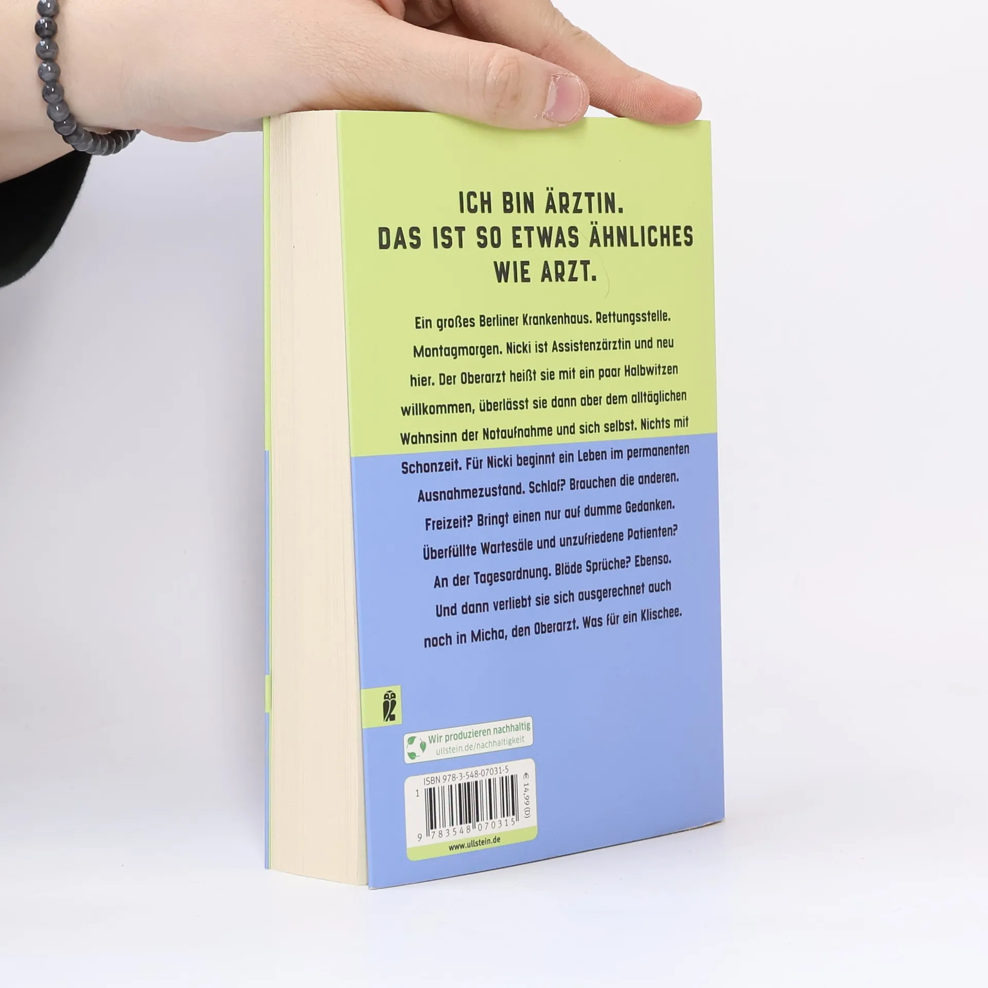 ICH BIN ÄRZTIN. DAS IST SO ETWAS ÄHNLICHES WIE ARZT. Ein großes Berliner Krankenhaus. Rettungsstelle. Montagmorgen. Nicki ist Assistenzärztin und neu hier. Der Oberarzt heißt sie mit ein paar Halbwitzen willkommen, überlässt sie dann aber dem alltäglichen Wahnsinn der Notaufnahme und sich selbst. Nichts mit Schonzeit. Für Nicki beginnt ein Leben im permanenten Ausnahmezustand. Schlaf? Brauchen die anderen. Freizeit? Bringt einen nur auf dumme Gedanken. Überfüllte Wartesäle und unzufriedene Patienten? An der Tagesordnung. Blöde Sprüche? Ebenso. Und dann verliebt sie sich ausgerechnet auch noch in Micha, den Oberarzt. Was für ein Klischee.