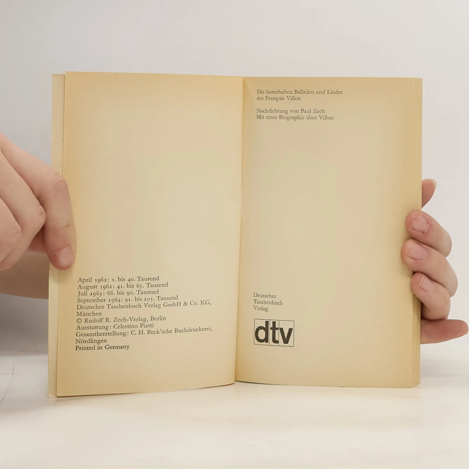 Von Die lasterhaften Balladen und Lieder des François Villon (1963) sind aktuell auf Lager verfügbar.