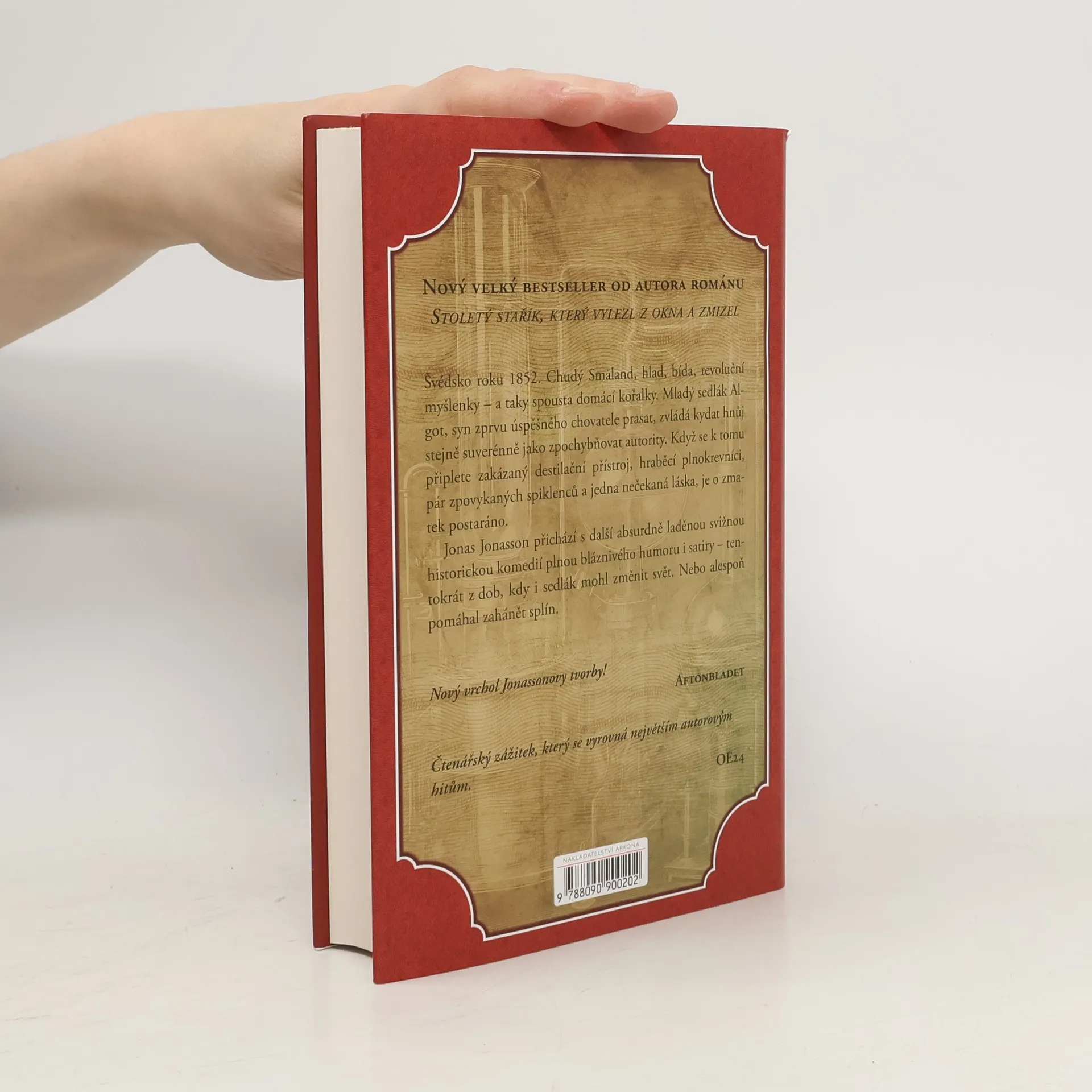 Švédsko roku 1852. Chudý Smaland, hlad, bída, revoluční myšlenky – a taky spousta domácí kořalky. Mladý sedlák Algot, syn zprvu úspěšného chovatele prasat, zvládá kydat hnůj stejně suverénně jako zpochybňovat autority. Když se k tomu připlete zakázaný destilační přístroj, hraběcí plnokrevníci, pár zpovykaných spiklenců a jedna nečekaná láska, je o zmatek postaráno. Jonas Jonasson přichází s další absurdně laděnou svižnou historickou komedií plnou bláznivého humoru i satiry – tentokrát z dob, kdy i sedlák mohl změnit svět. Nebo alespoň pomáhal zahánět splín.