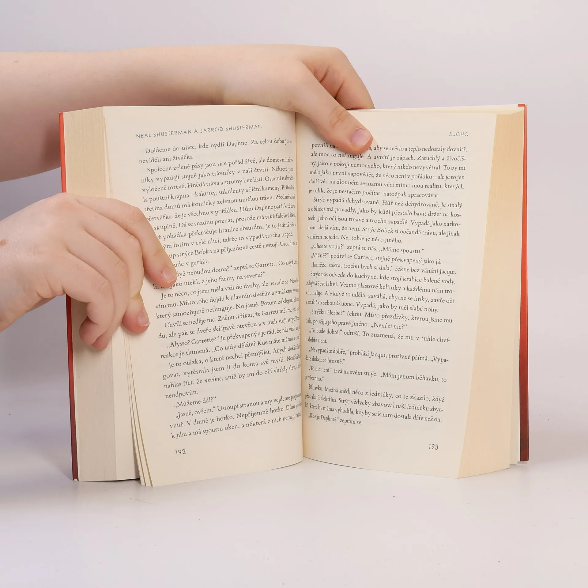 VŠICHNI SI BUDOU PAMATOVAT, KDE BYLI, KDYŽ VYSCHLY VODOVODY. Sucho – nebo Bezvodí, jak tomu všichni říkají – už trvá nějakou dobu. Život se proměnil v nekonečný seznam zákazů: nezalévejte zahrady, nebuďte dlouho ve sprše, nepodléhejte panice. Jenže teď už žádná voda nezbývá. Alyssina poklidná ulice na předměstí se najednou propadne do válečné zóny plné zoufalství a násilí. Když se její rodiče nevrátí domů, musí dát dohromady skupinu osob, které by se za normálních okolností asi nepotkaly, a zahájit pátrání po vodě. Každý z nich bude muset učinit neskutečná rozhodnutí, aby přežil.