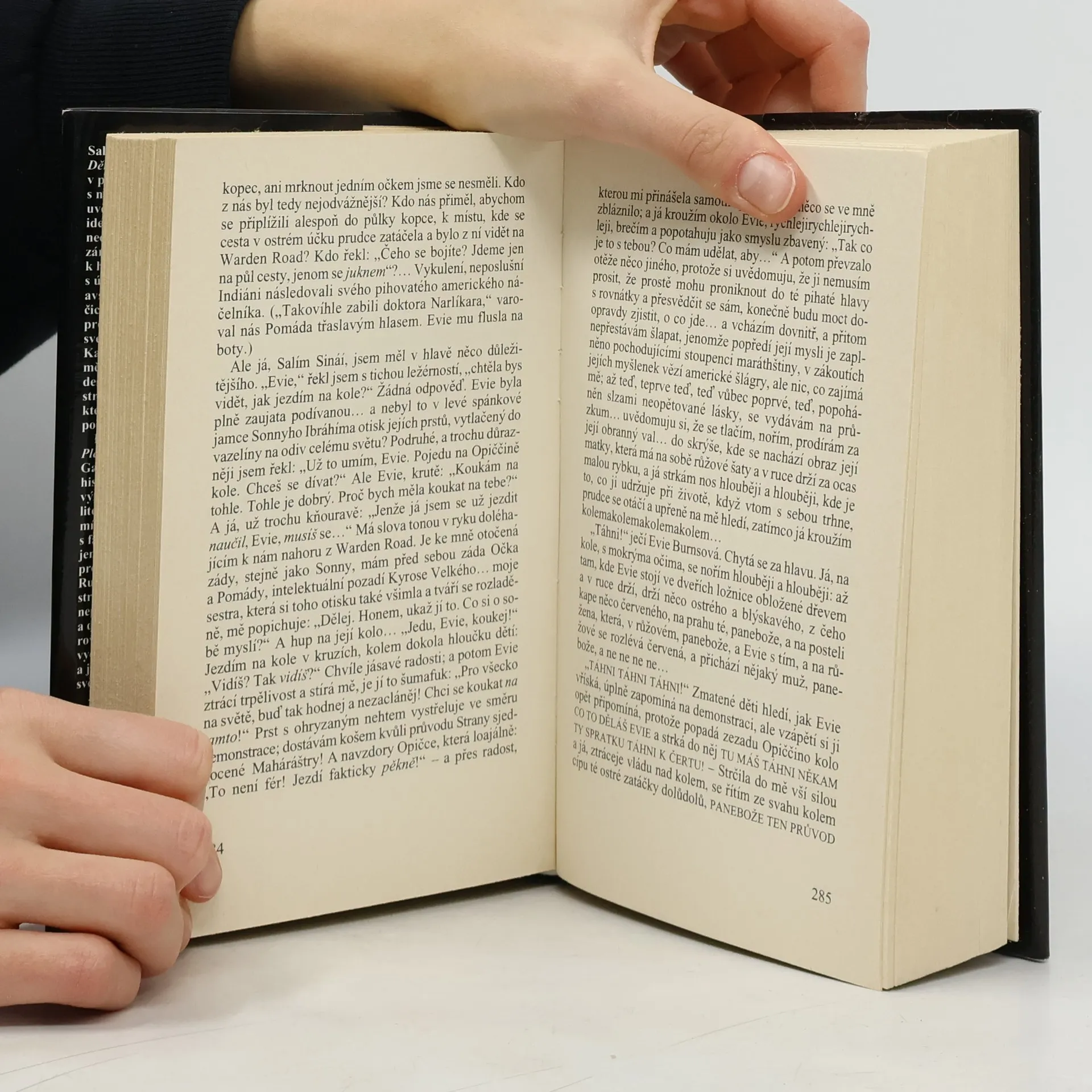 Salím Sináí, vypravěč a hlavní hrdina nejznámějšího románu Salmana Rushdieho, je jedním z 1001 dětí zrozených v první hodině indické nezávislosti a obdařených zázračnými schopnostmi, zároveň však bolestně spojených s historií a osudem své země. Jeho fascinující vyprávění, postupně se odvíjející mezi řadou indických a pákistánských měst, provede čtenáře ságou tří generací Salímovy rodiny, více než šesti desítkami let moderní indické historie i hrdinovou strastiplnou poutí za smyslem osudu vlastní existence, který jako by ztělesňoval rozporuplnou a stěží postižitelnou identitu samotné Indie. Rushdieho barvitá a podmanivá próza, mistrně mísící realitu s imaginací a kroniku politického vývoje s fantastickým příběhem, byla r. 1993 jmenována nejlepším z děl oceněných v předchozích pětadvaceti letech prestižní britskou literární cenou Booker Prize.