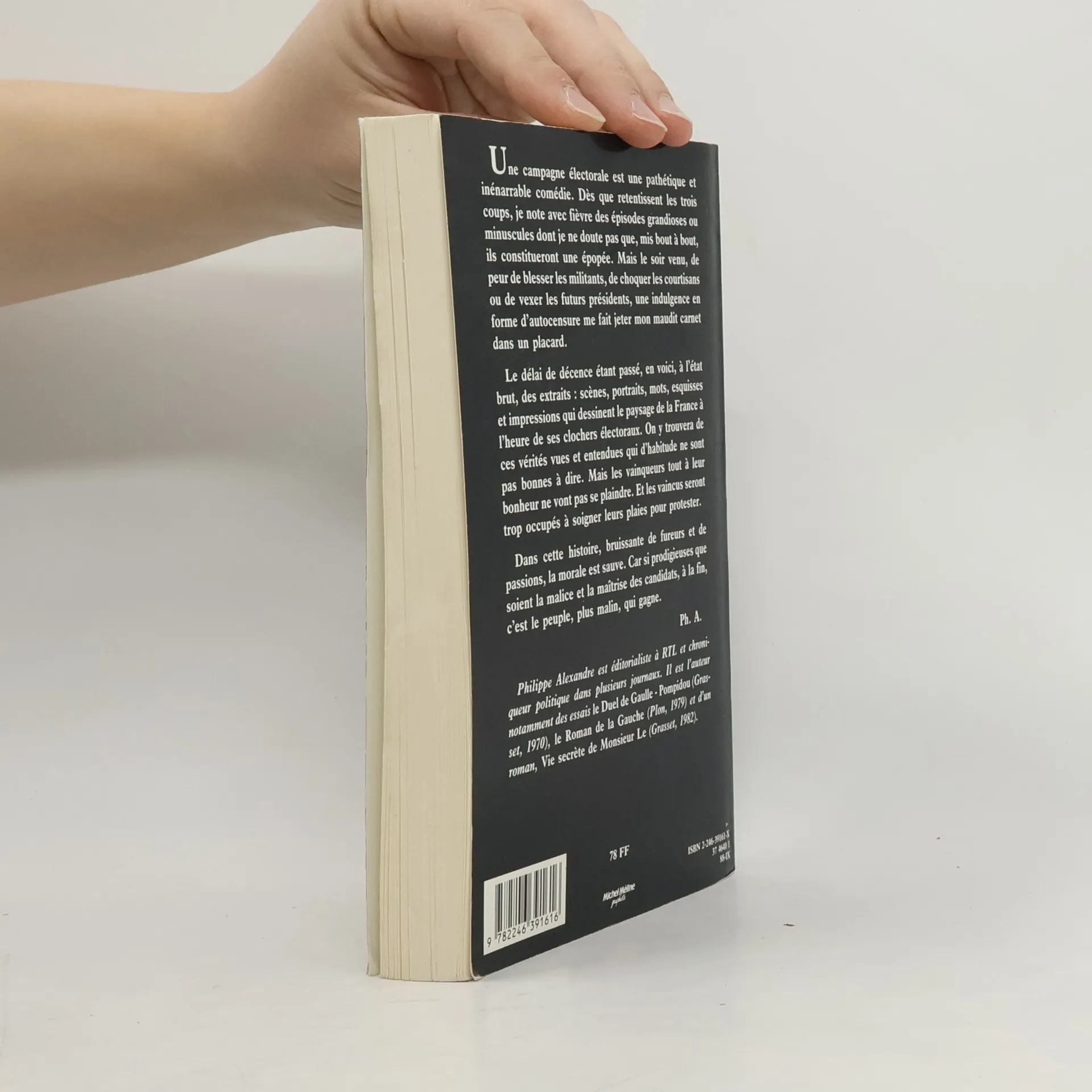 Mil neuf cent quatre-vingt-huit. Les dessous d'une campagne ľectorale (pršidentielle) franȧise. Par un ďitorialiste et chroniqueur politique, conscient de s't̊re soumis ̉l'autocensure, et qui se df̌oule (ex.: "Mitterrand est candidat. Mobile: la haine"). A la fois drl̥e et dšolant (quelles moeurs). Pour amateurs de carnaval. [SDM].