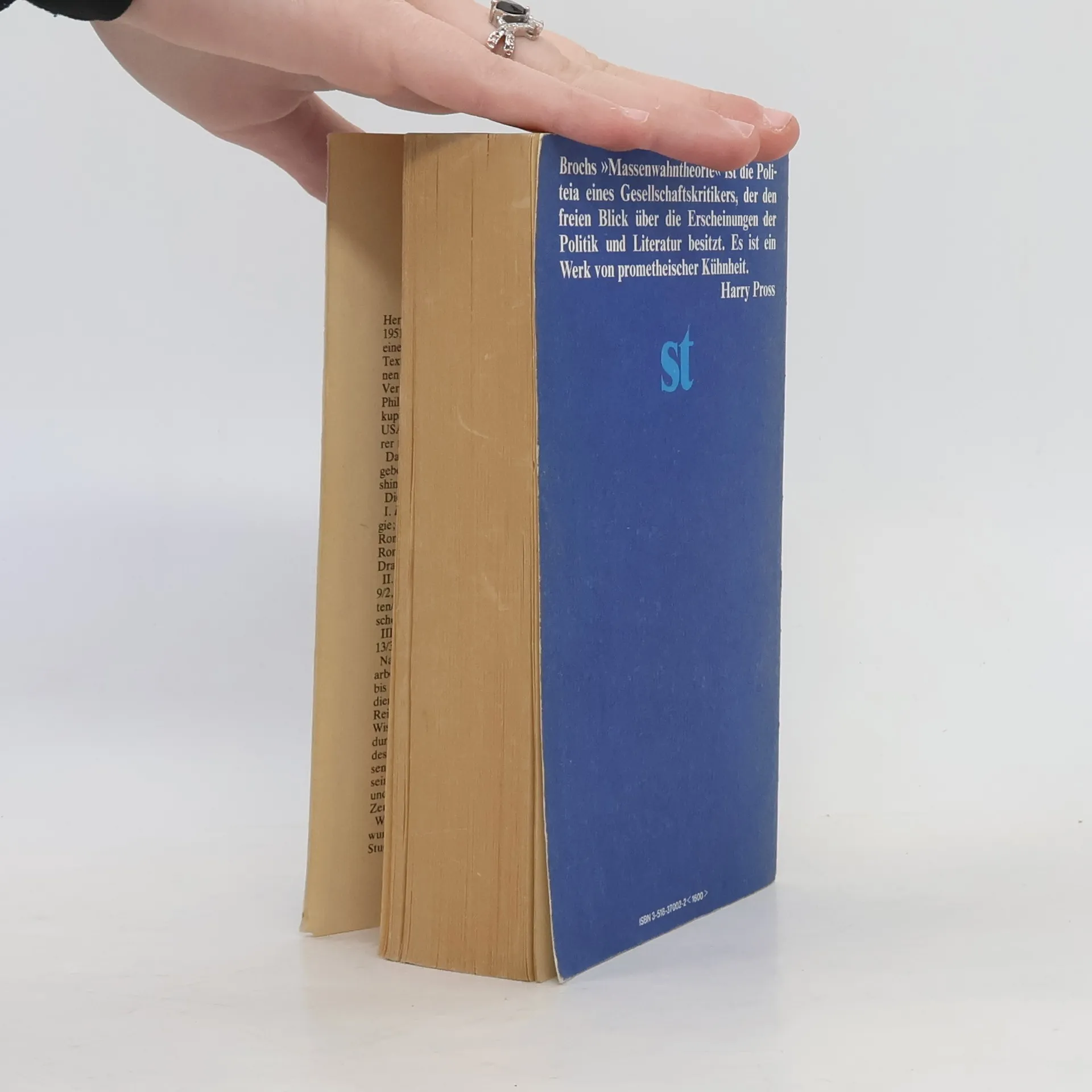 Brochova Theorie des massiven Wahns ist eine Sammlung seiner Arbeiten aus den Jahren 1939 bis 1946, die er im amerikanischen Exil veröffentlichen wollte. Mit Unterstützung zeitgenössischer Erkenntnisse aus Philosophie, Psychologie, Soziologie und Politologie möchte er die philosophisch-psychologischen Ursachen des massiven Wahns in totalitären Staaten, sowohl faschistischer als auch kommunistischer Art, aufzeigen. Er beschränkt sich jedoch nicht auf die bloße Feststellung der Ursachen, sondern skizziert Wege, wie man effektiv gegen den massiven Wahnsinn kämpfen kann, dessen Gefahren auch nach dem Tod eines Diktators nicht verschwinden. Brochs Worte sind besonders aktuell, wenn er betont, dass bei der ständigen Verteidigung der Demokratie gegen den Totalitarismus „die Massen sich niemals mit leerer Selbstbeweihräucherung der Demokratie abspeisen lassen“ und dass sie mit „trockenen Tiraden“ nur dorthin getrieben werden, wo ihnen konkrete, wenn auch schreckliche Ziele angeboten werden, also in die Armee des Faschismus.