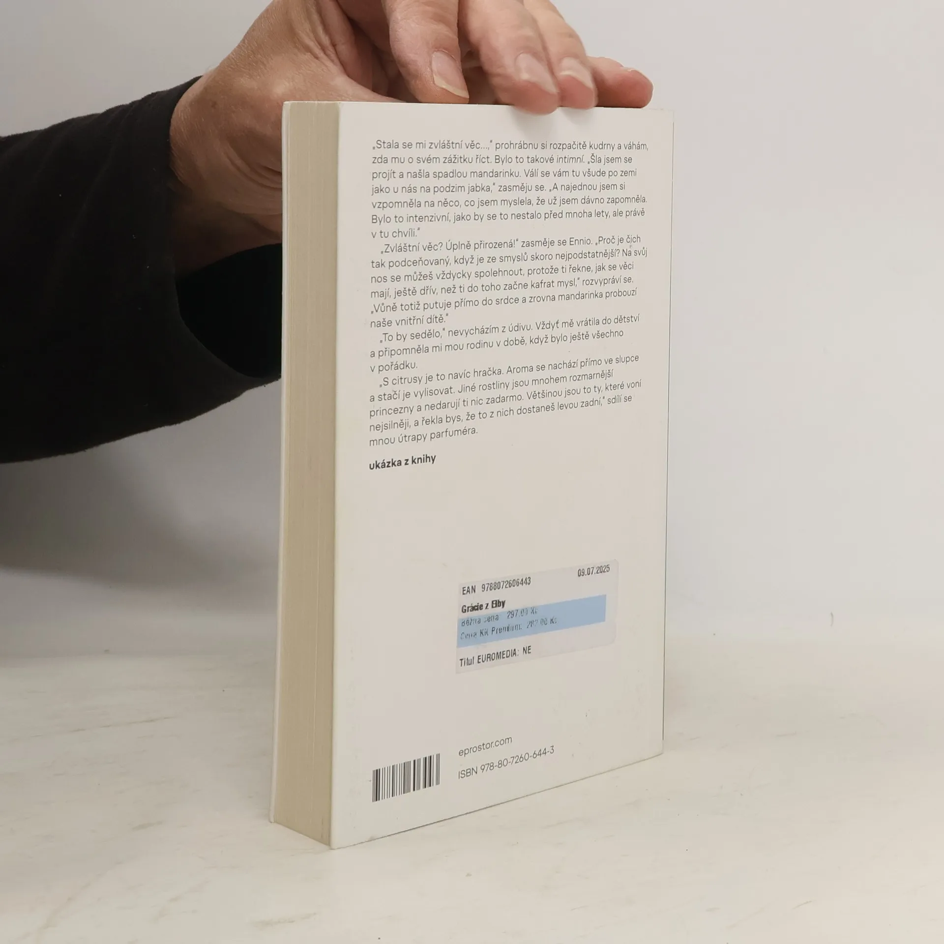 Román o síle vůní a přátelství, ale také o endometrióze a hledání pravé životní cesty, nás přivádí na italský ostrov Elbu. Zde se Beáta, hlavní hrdinka knihy, na prahu čtyřicátých narozenin pokouší čelit chronické bolestivé nemoci za pomoci aromaterapie a nečekaných setkání, jež jsou nadějí na vyléčení prožitých traumat a osamělého života bez lásky.
