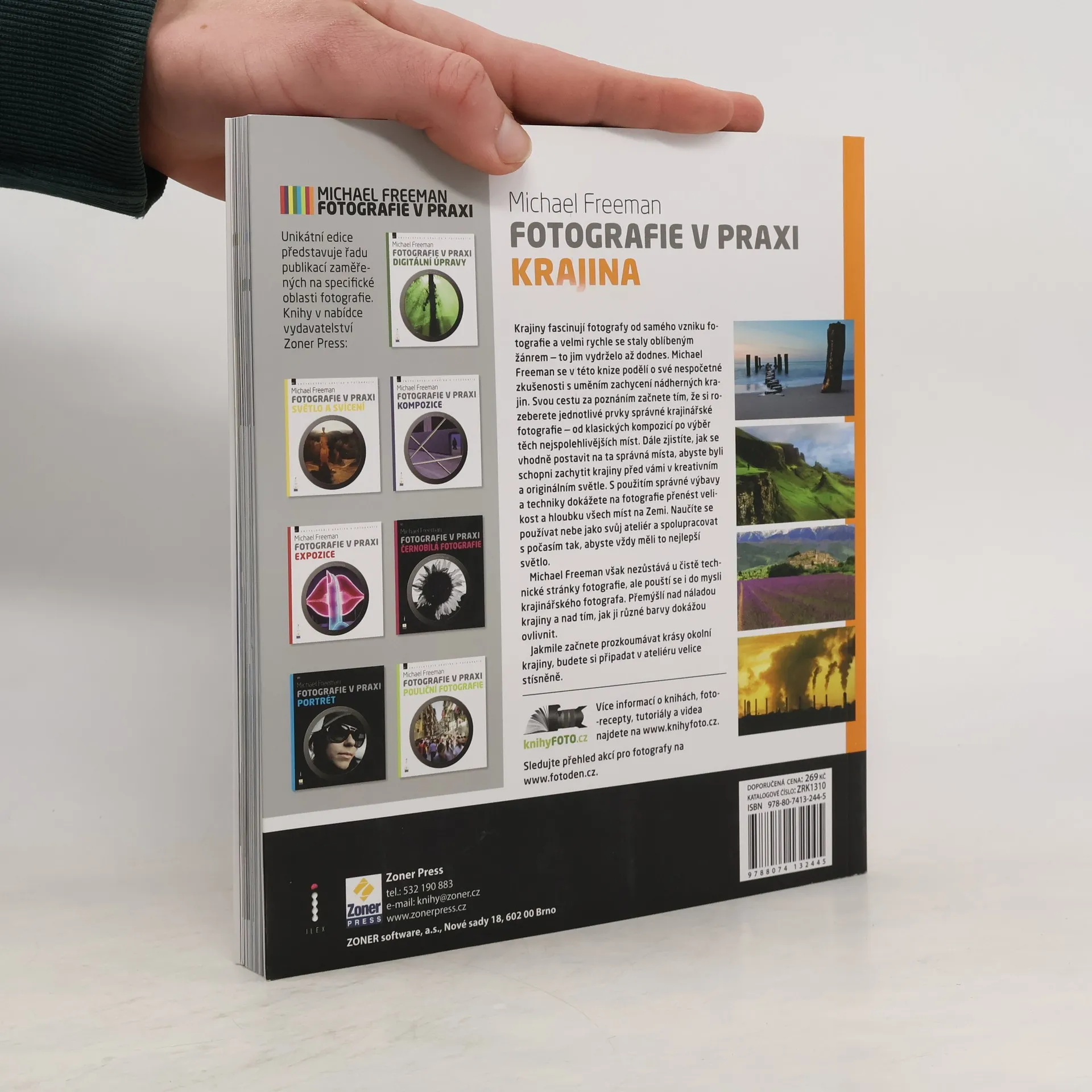 Krajina nikam neuteče a můžete ji fotit, kdy se vám zachce. Proč je však krajinářská fotografie tak náročná? Tento žánr přitahuje mnoho fotografů, ale pouze málo snímků dosahuje vysoké kvality. Kniha poskytuje základní informace o fotografickém vybavení, technice a kompozici. V praktických lekcích se naučíte, jak vnímat krajinu a identifikovat její klíčové prvky pro zajímavé kompozice. Zaměříte se na práci s horizontem, oblohou, tekoucí vodou a začlenění lidí nebo staveb jako měřítka pro zdůraznění monumentalitu krajiny. Kapitoly o barevném stylu ukazují, jak využít jevy jako mlha nebo déšť pro působivé fotografie. Naučíte se pracovat s popředím a pozadím a vytvářet vrstvy, které nabídnou divákovi nový pohled na krajinu. Ediční řada Fotografie v praxi je určena všem zájemcům o digitální fotografii, ale je užitečná i pro fotografy s klasickými filmovými fotoaparáty. Publikace se zaměřují na specifické problémy, aniž by opakovaly základní informace o fotografování. Každá kniha se detailně věnuje určité oblasti, vhodné pro začínající a středně pokročilé fotografy. Obsahují cvičení pro čtenáře a ukázky splněných úkolů studentů autorových kurzů, doplněné o autorovo hodnocení a poznámky.