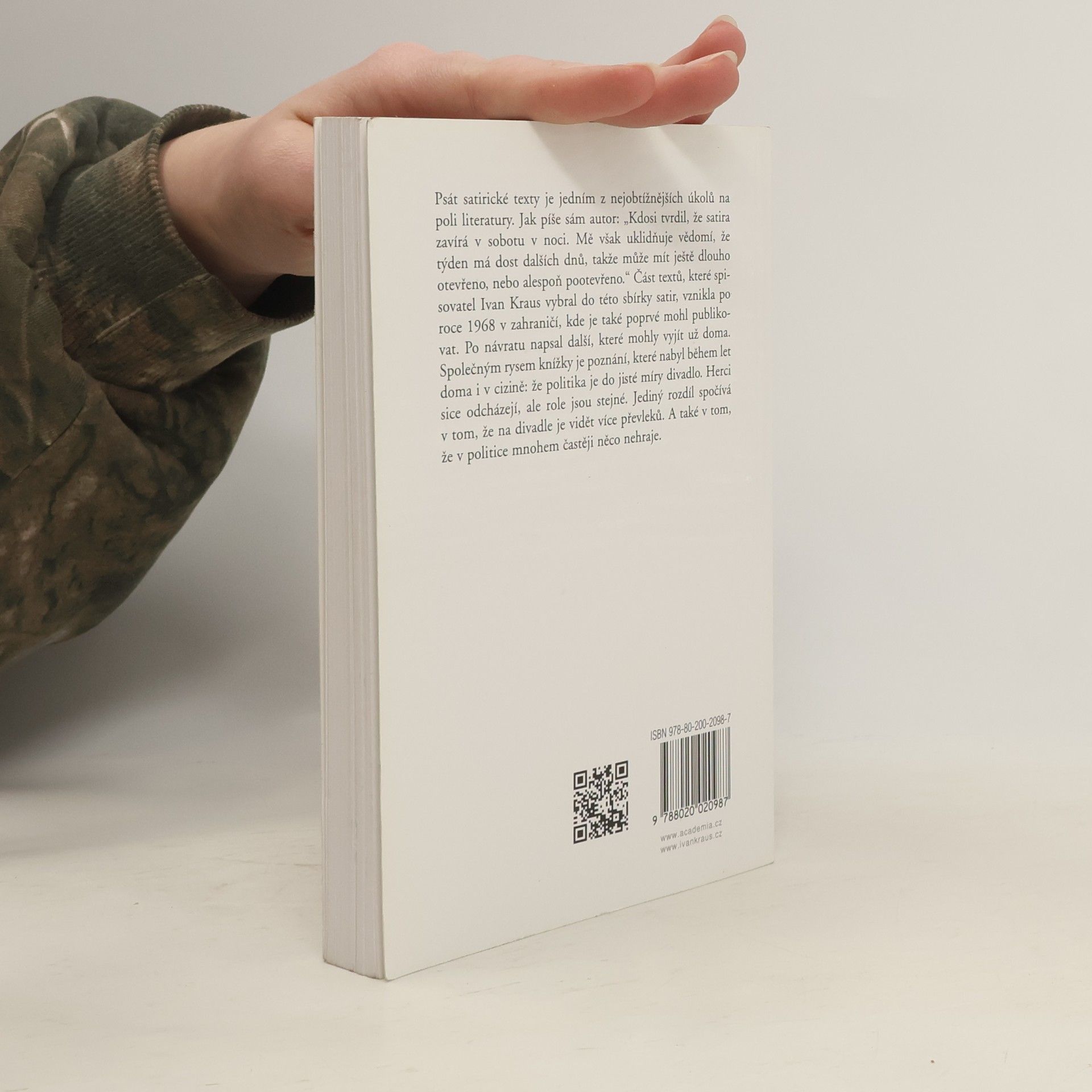 Psát satirické texty je jedním z nejobtížnějších úkolů na poli literatury. Jak píše sám autor: „Kdosi tvrdil, že satira zavírá v sobotu v noci. Mě však uklidňuje vědomí, že týden má dost dalších dnů, takže může mít ještě dlouho otevřeno, nebo alespoň pootevřeno.“ Část textů, které spisovatel Ivan Kraus vybral do této sbírky satir, vznikla po roce 1968 v zahraničí, kde je také poprvé mohl publikovat. Po návratu napsal další, které mohly vyjít už doma. Společným rysem knížky je poznání, které nabyl během let doma i v cizině: že politika je do jisté míry divadlo. Herci sice odcházejí, ale role jsou stejné. Jediný rozdíl spočívá v tom, že na divadle je vidět více převleků. A také v tom, že v politice mnohem častěji něco nehraje.
