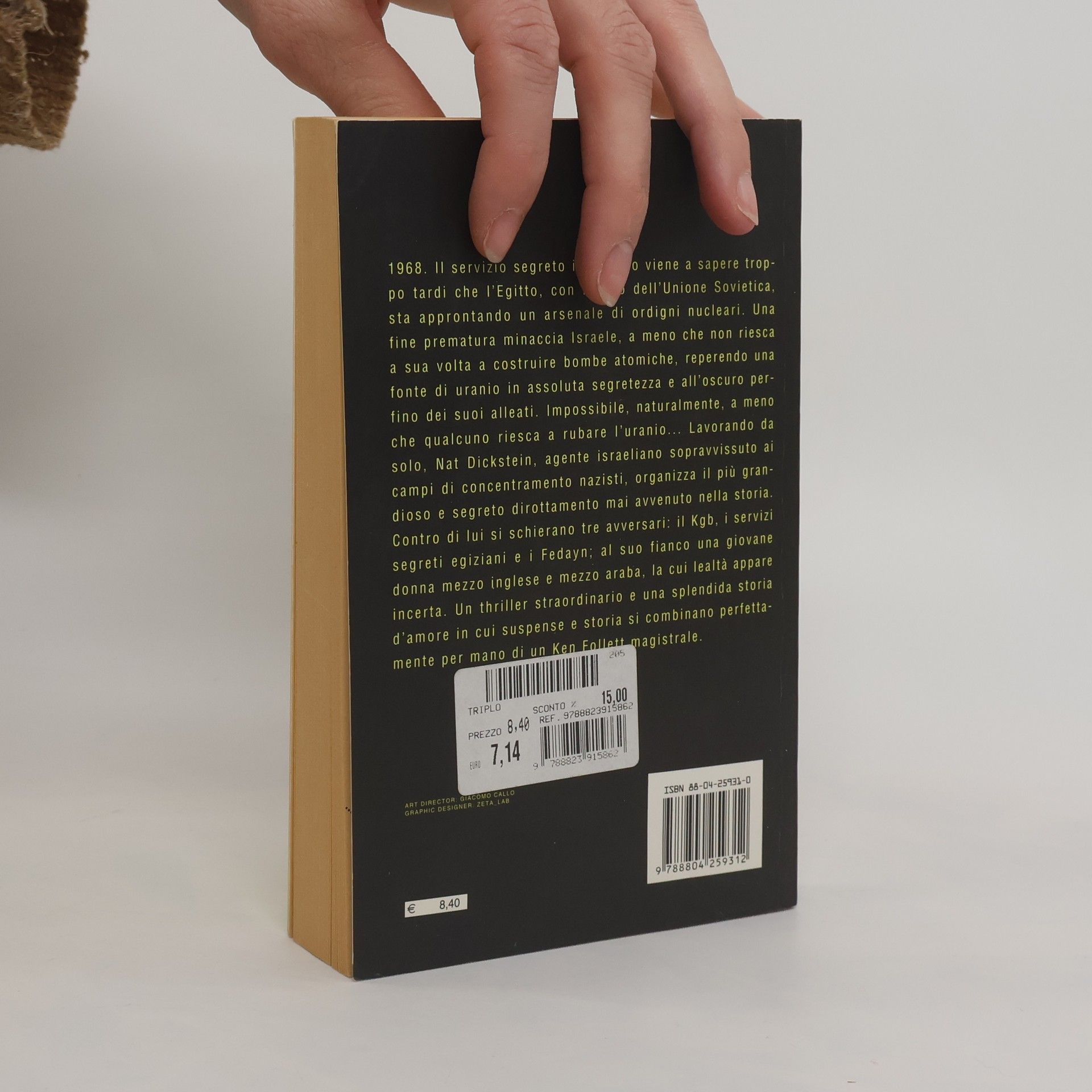 1968. Il servizio segreto israeliano viene a sapere troppo tardi che l'Egitto, con l'aiuto dell'Unione Sovietica, sta approntando un arsenale di armi nucleari: una fine prematura minaccia Israele, a meno che non riesca a sua volta a costruire bombe atomiche, reperendo una fonte di uranio in assoluta segretezza e all'oscuro perfino dei suoi alleati. Impossibile, naturalmente, a meno che qualcuno riesca a rubare l'uranio... Lavorando da solo, Nat Dickstein, agente israeliano sopravvissuto ai campi di concentramento nazisti, organizza il più grandioso e segreto dirottamento mai avvenuto nella storia: Contro di lui si schierano tre avversari: il Kgb, i servizi segreti egiziani e i Fedayn; al suo fianco una giovane donna mezza inglese e mezza araba, la cui lealtà appare incerta. Un Thriller straordinario e una splendida storia d'amore in cui suspance e attualità si combinano perfettamente per mano di un Ken Follett magistrale.