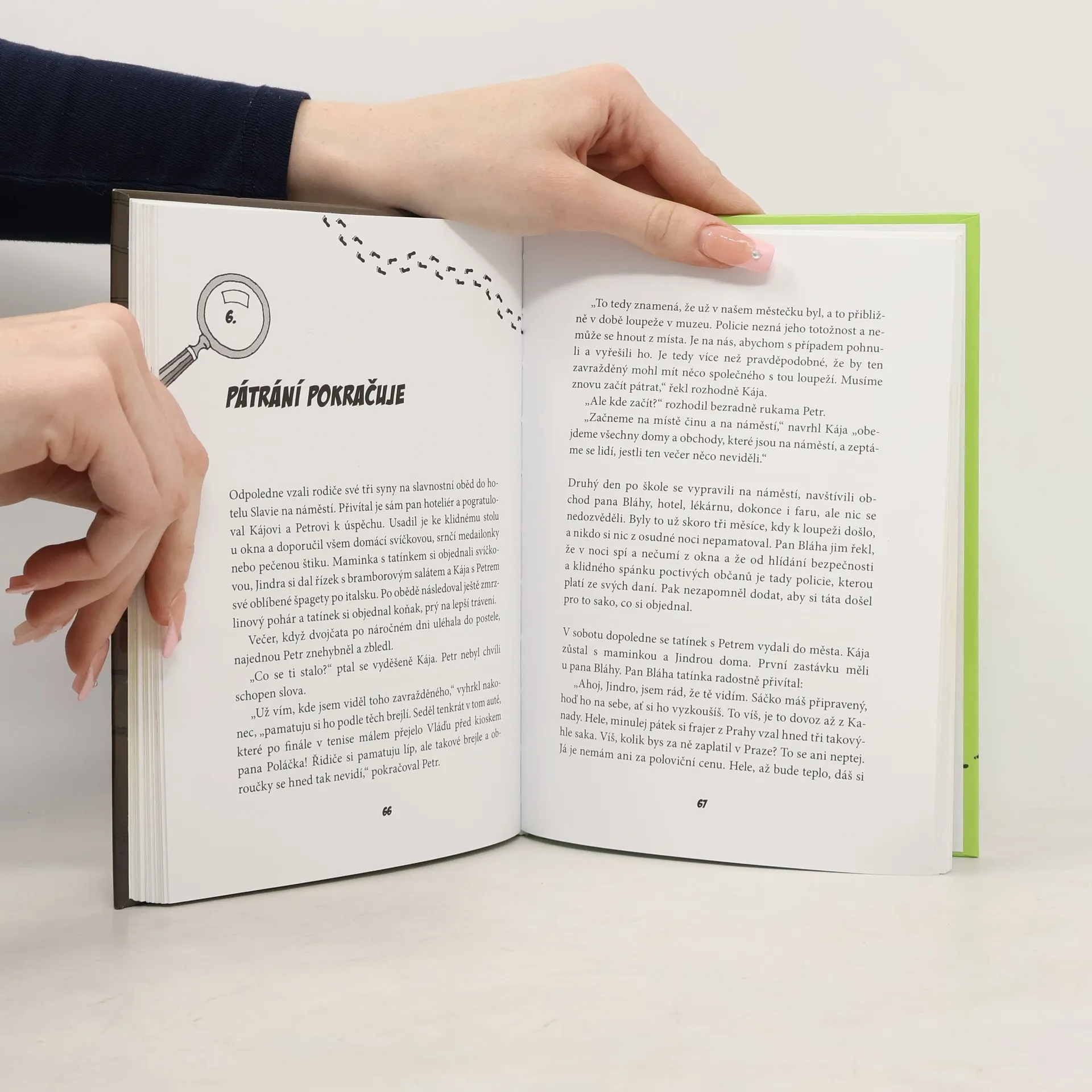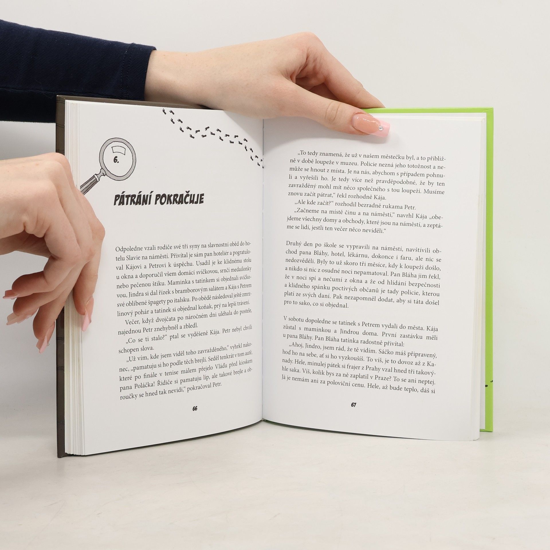 Klidné a ospalé městečko na Vysočině už dlouho nezažilo takový poprask! Do muzea se vloupali neznámí zloději a ukradli z něj cenné exponáty. Když se dvojčatům Kájovi a Petrovi náhodou dostanou do rukou noviny, do kterých kdosi napsal zvláštní šifru, začnou tušit, že jejich objev možná s loupeží souvisí. Jak dopadne pátrání, do kterého se kluci pustí na vlastní pěst? Napínavá detektivka pro čtenáře, kteří mají rádi záhady a luštění. Prostřednictvím zapeklitých úkolů se totiž mohou do řešení případu sami zapojit!