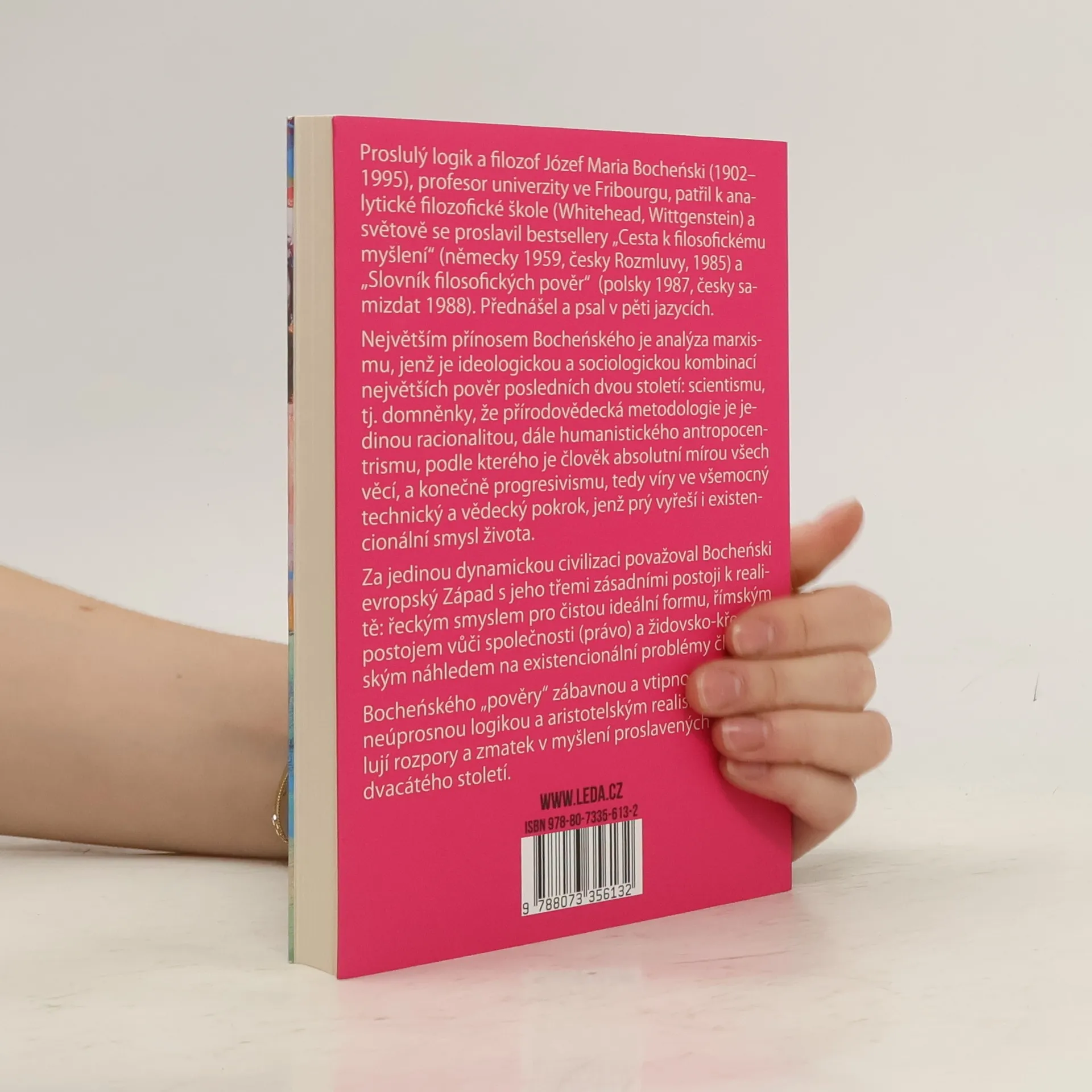 Proslulý logik a filozof Józef Maria Bocheński (1902–1995), profesor univerzity ve Fribourgu, patřil k analytické filozofické škole (Whitehead, Wittgenstein) a světově se proslavil bestsellery „Cesta k filosofickému myšlení“ (německy 1959, česky Rozmluvy, 1985) a „Slovník filosofických pověr“ (polsky 1987, česky samizdat, 1988). Přednášel a psal v pěti jazycích. Největším přínosem Bocheńského je analýza marxismu, jenž je ideologickou a sociologickou kombinací největších pověr posledních dvou století: scientismu, tj. domněnky, že přírodovědecká metodologie je jedinou racionalitou, dále humanistického antropocentrismu, podle kterého je člověk absolutní mírou všech věcí, a konečně progresivismu, tedy víry ve všemocný technický a vědecký pokrok, jenž prý vyřeší i existenciální smysl života. Za jedinou dynamickou civilizaci považoval Bocheński evropský Západ s jeho třemi zásadními postoji k realitě: řeckým smyslem pro čistou ideální formu, římským postojem vůči společnosti (právo) a židovsko-křesťanským náhledem na existenciální problémy člověka. Bocheńského „pověry“ zábavnou a vtipnou formou, s neúprosnou logikou a aristotelským realismem odhalují rozpory a zmatek v myšlení proslavených mudrců dvacátého století.