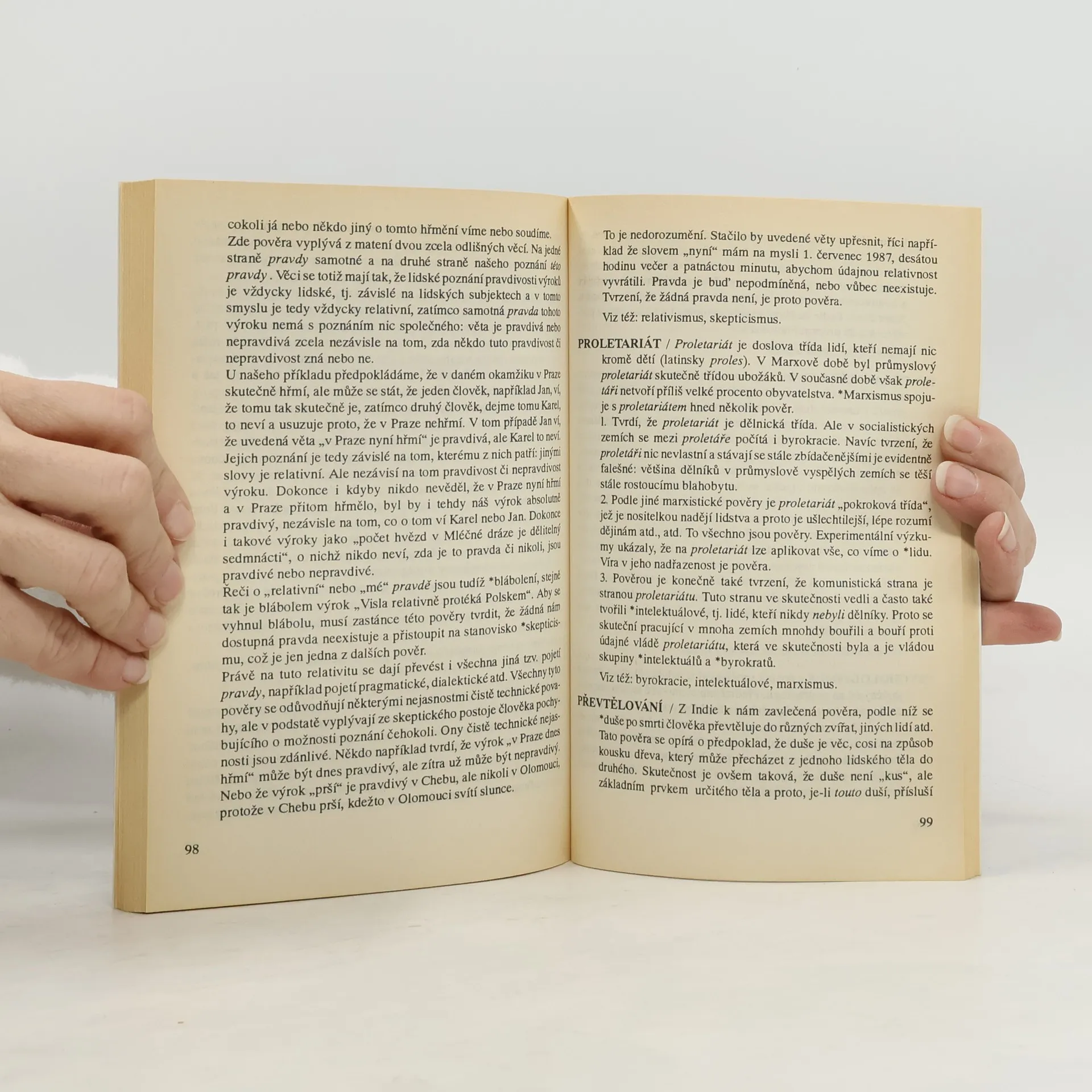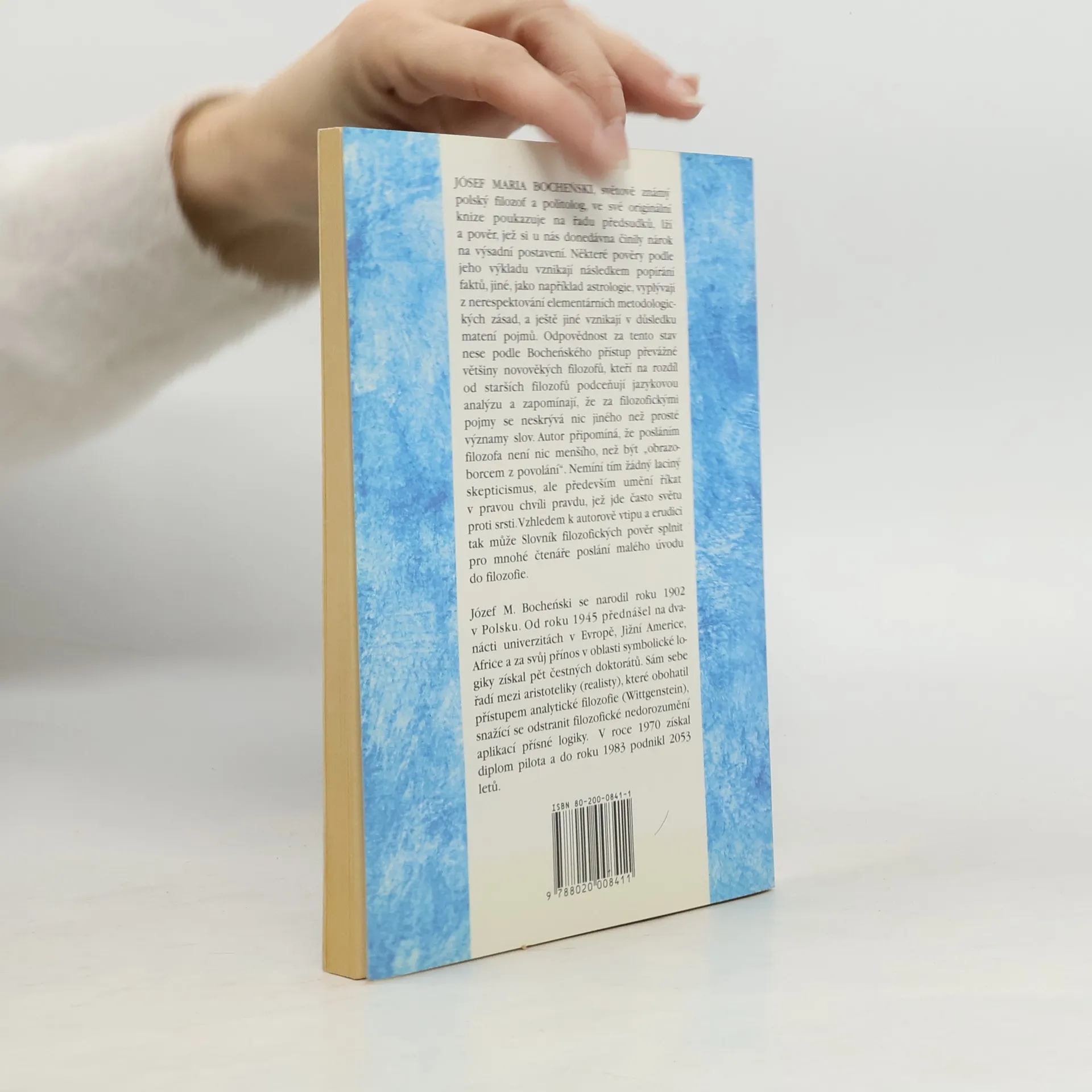 Jósef Maria Bocheński, světově známý polský filozof a politolog, ve své originální knize poukazuje na řadu předsudků, lží a pověr, jež si u nás donedávna činily nárok na výsadní postavení. Některé pověry podle jeho výkladu vznikají následkem popírání faktů, jiné, jako například astrologie, vyplývají z nerespektování elementárních metodologických zásad, a ještě jiné vznikají v důsledku matení pojmů. Odpovědnost za tento stav nese podle Bocheńského přístup převážné většiny novověkých filozofů, kteří na rozdíl od starších filozofů podceňují jazykovou analýzu a zapomínají, že za filozofickými pojmy se neskrývá nic jiného než prosté významy slov. Autor připomíná, že posláním filozofa není nic menšího, než být „obrazoborcem z povolání”. Nemíní tím žádný laciný skepticismus, ale především umění říkat v pravou chvíli pravdu, jež jde často světu proti srsti. Vzhledem k autorově vtipu a erudici tak může Slovník filozofických pověr splnit pro mnohé čtenáře poslání malého úvodu do filozofie. Vydání v tomto překladu 3., v nakladatelství Academia 1. - jako reprint druhého vydání v českém jazyce (Nakladatelství AETERNA, Praha 1993)... celý text