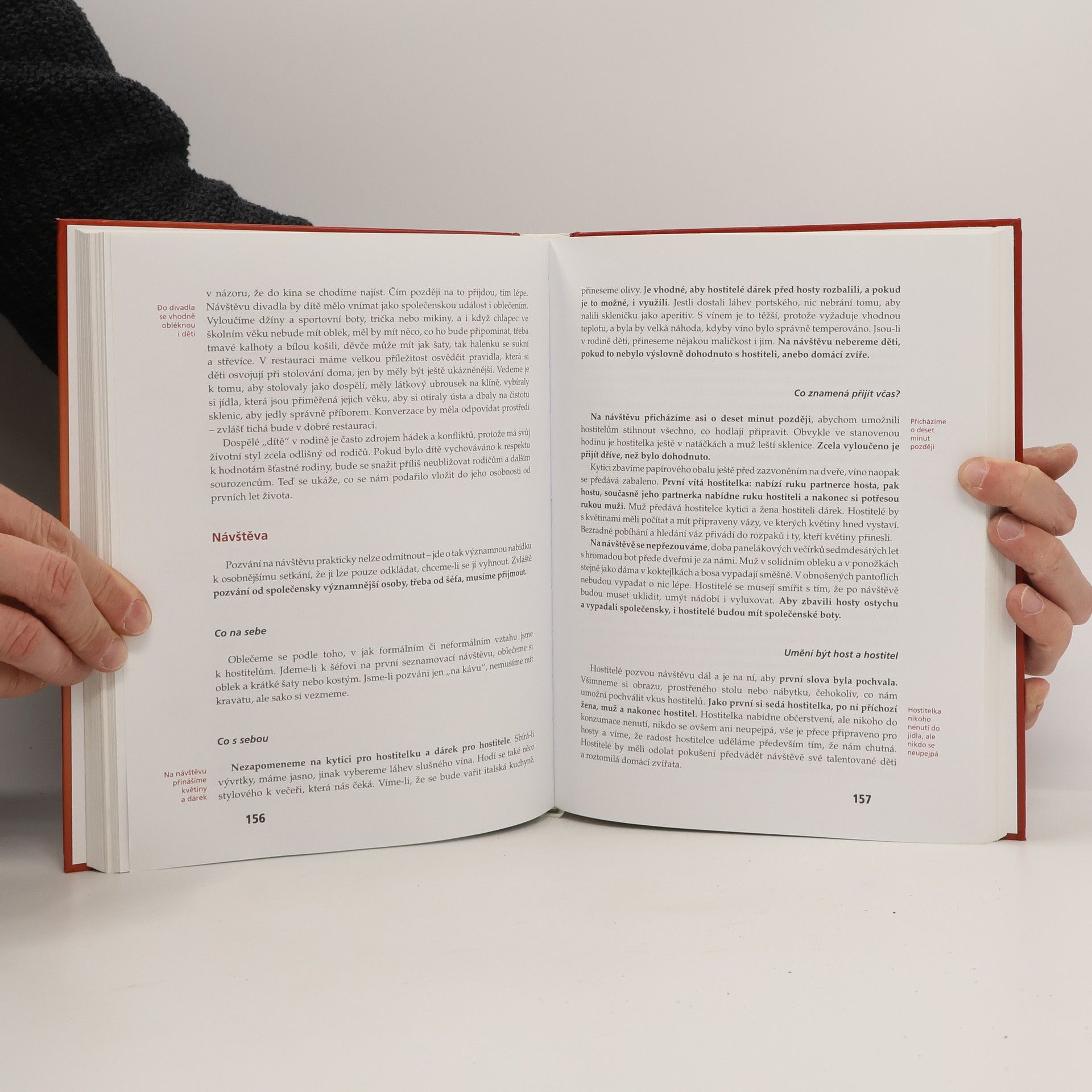 Kniha je univerzálním průvodcem různými společenskými událostmi. Seznamuje čtenáře se všemi formami společenského styku, se správným řešením společenských situací, s pravidly jednání jak doma, tak v cizině. Množstvím informací a rad překonává všechny dosud vydané příručky společenského chování. Poskytuje praktické návody, jak se chovat ve společnosti, v kanceláři, na ulici i doma, jak správně stolovat, jak se oblékat, jak se chovat na recepci, na banketu, jak připravit návštěvu ústavního činitele, jak jednat se zahraničními partnery. Vychází ze soudobého pojetí etikety a protokolu. Je nezbytnou pomůckou pro školu, úřad, firmu i rodinu. Druhé, doplněné a rozšířené vydání reaguje na změny, jimiž česká společnost prochází. Je obohaceno o nové trendy v oblékání, o další typy společenských příležitostí, o rozšířený přehled forem stolování. Kniha má oproti prvnímu vydání dvojnásobný rozsah. Doplněné a rozšířené pasáže přivítají manažeři, vedoucí pracovníci úřadů a institucí, diplomaté, učitelé, studenti a rodiče.