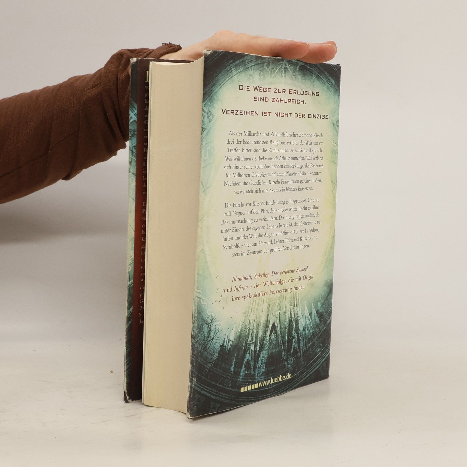 ILLUMINATI, SAKRILEG, DAS VERLORENE SYMBOL und INFERNO - vier Welterfolge, die mit ORIGIN ihre spektakuläre Fortsetzung finden.Die Wege zur Erlösung sind zahlreich.Verzeihen ist nicht der einzige.Als der Milliardär und Zukunftsforscher Edmond Kirsch drei der bedeutendsten Religionsvertreter der Welt um ein Treffen bittet, sind die Kirchenmänner zunächst skeptisch. Was will ihnen der bekennende Atheist mitteilen? Was verbirgt sich hinter seiner „bahnbrechenden Entdeckung“, das Relevanz für Millionen Gläubige auf diesem Planeten haben könnte? Nachdem die Geistlichen Kirschs Präsentation gesehen haben, verwandelt sich ihre Skepsis in blankes Entsetzen.Die Furcht vor Kirschs Entdeckung ist begründet. Und sie ruft Gegner auf den Plan, denen jedes Mittel recht ist, ihre Bekanntmachung zu verhindern. Doch es gibt jemanden, der unter Einsatz des eigenen Lebens bereit ist, das Geheimnis zu lüften und der Welt die Augen zu öffnen: Robert Langdon, Symbolforscher aus Harvard, Lehrer Edmond Kirschs und stets im Zentrum der größten Verschwörungen.