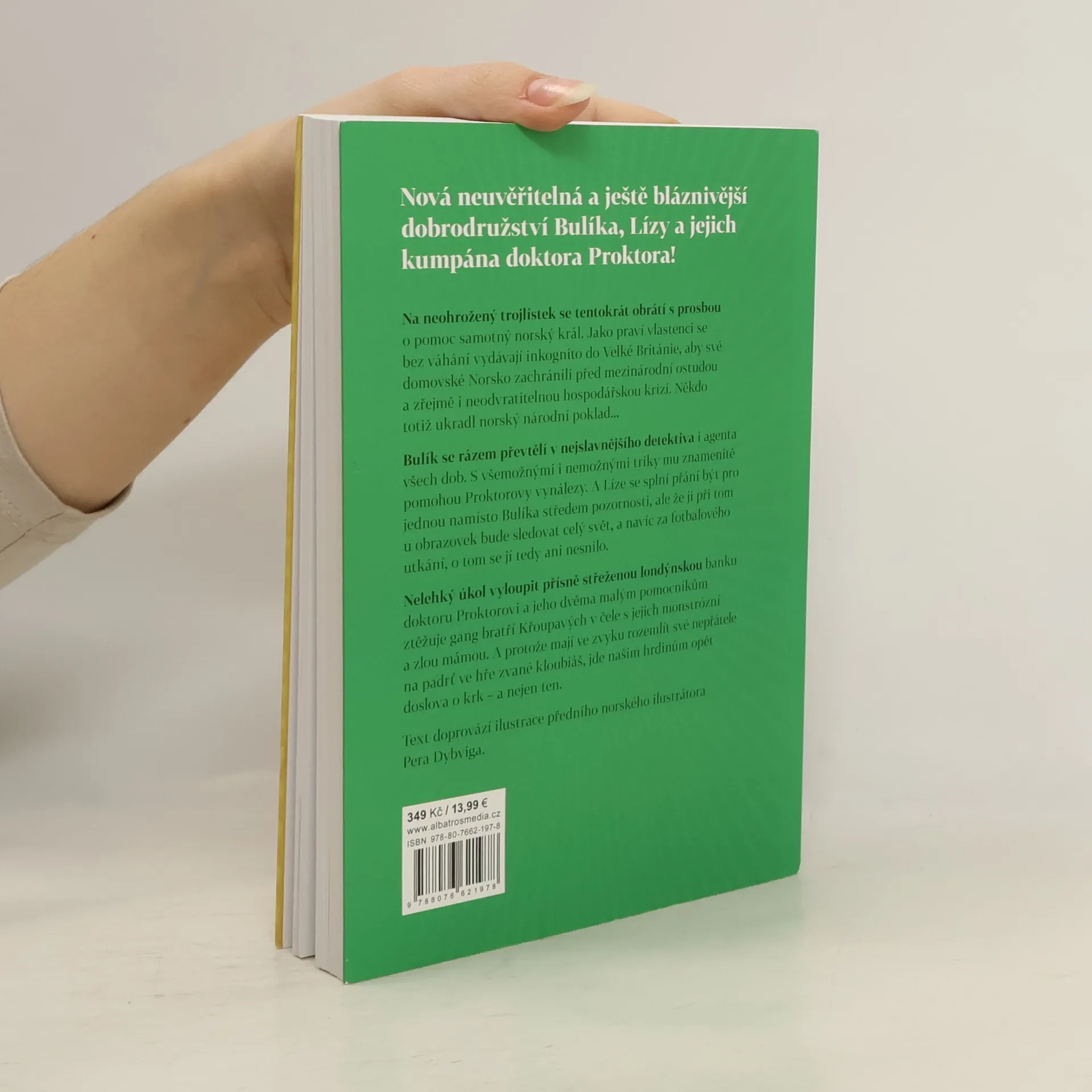 Další neuvěřitelná a ještě bláznivější dobrodružství Bulíka, Lízy a jejich kumpána doktora Proktora Na neohrožený trojlístek se tentokrát obrátí s prosbou o pomoc samotný norský král. Jako praví vlastenci se bez váhání vydávají inkognito do Británie, aby zachránili své domovské Norsko před mezinárodní ostudou a zřejmě i neodvratitelnou hospodářskou krizí. Někdo totiž ukradl norský národní poklad. Bulík jako by se převtělil v Sherlocka Holmese a jeho detektivní postupy si nezadají s triky nejslavnějšího agenta světa. Znamenitě mu v tom pomohou Proktorovy vynálezy. A Líze se splní přání být pro jednou namísto Bulíka středem pozornosti, ale že ji u obrazovek bude sledovat celý svět, o tom se jí ani nesnilo. Text doprovází ilustrace předního norského ilustrátora Pera Dybviga.