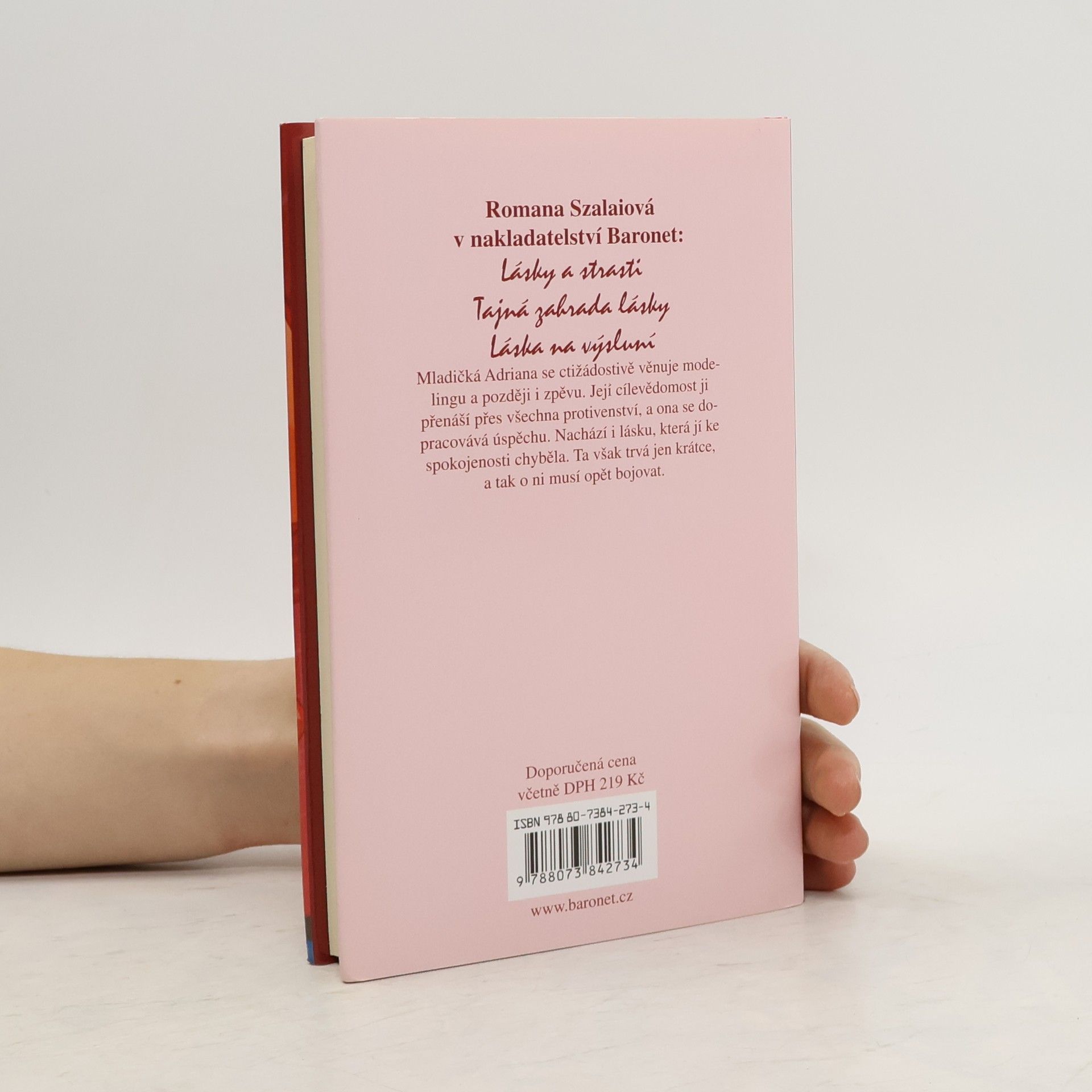 Zkušená autorka řady úspěšných knih nabízí čtenářům nový romantický a neobyčejně dramatický příběh. Mladičká Adriana, toužící po úspěchu ve velkém světě, se ctižádostivě věnuje modelingu a později i zpěvu. Její ctižádostivost ji přenáší přes všechna protivenství a katastrofy, dopracovává se úspěchu a nakonec poznává i kouzlo lásky v náručí irského šlechtice. Avšak ani nyní jí není osud nakloněn, jejich cesty se rozejdou, ale Adriana se s houževnatostí sobě vlastní, přestože je těhotná, vydává za svou láskou do Irska. Bude síla její lásky větší než protivenství osudu?