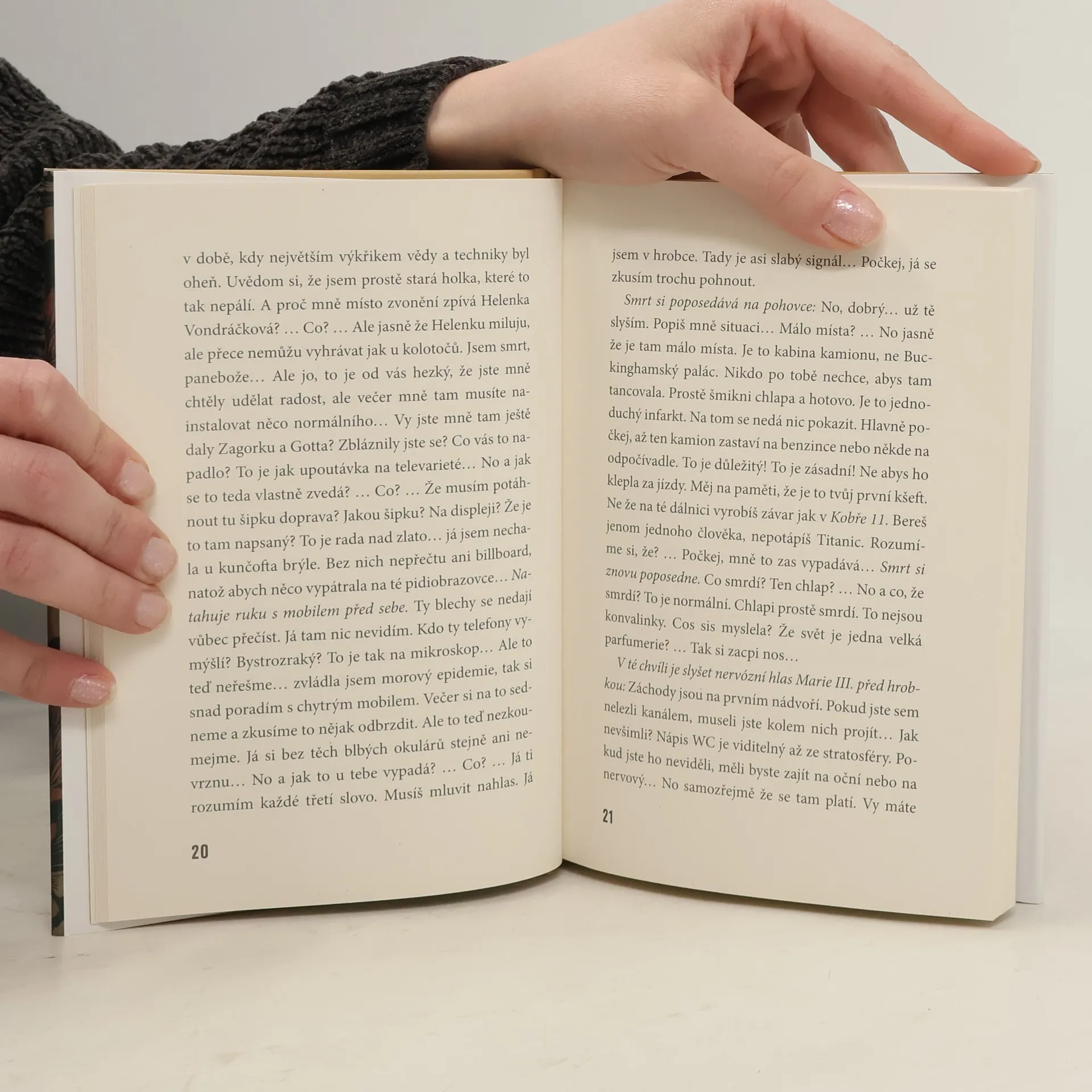 Nová, a zřejmě už definitivně poslední Aristokratka je černou komedií o posledních věcech člověka. Otázka, zda může být i kniha, kde v jedné ze dvou hlavních rolí řádí Smrt, zábavná, je asi nadbytečná: v podání Evžena Bočka určitě. Dokonce velmi! Předchozí Aristokratka v Československu nás zavedla na počátek celé ságy, hluboko do minulosti. S Aristokratkou na smrtelné pohovce naopak zamíříme do budoucnosti, která je, přinejmenším v jednom ohledu, stejná pro všechny. Pro chudáka úplně stejně jako pro aristokratku. Ale když máte to štěstí, že vás na svět přivede Evžen Boček, dostanete ještě příležitost leccos se Smrtí probrat, než nadejde váš čas. Zvlášť, pokud je venku "vedro jako na Sahaře, biozátěž je na trojce" a v rodinné hrobce na Kostce tak příjemný chládek.