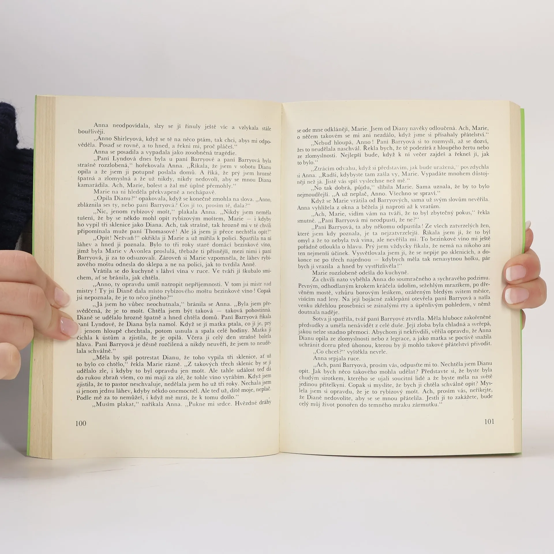 Příběh dívenky Anny, sirotka, který nachází u dvou stárnoucích sourozenců, až doposud osaměle hospodařících na své venkovské farmě, svůj první opravdový domov, má na hony daleko k jakékoli sentimentalitě. Zato vtipu, humoru a životního optimismu má v sobě nadbytek. Hubená, pihovatá ahlavně neuvěřitelně upovídaná Anna s rezavými vlasy a nevyčerpatelnou fantazií si získá čtenáře od prvního okamžiku. Lehce upravené vydání. 30000 váz. výtisků, 10000 brož. výtisků
