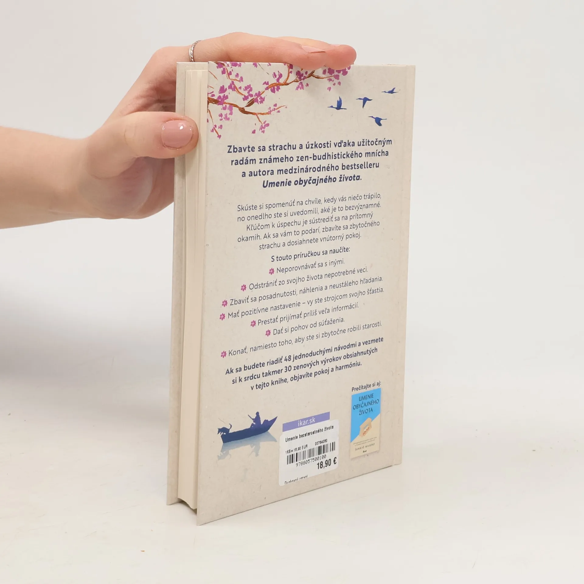 Táto užitočná publikácia od zen-budhistického mnícha, autora medzinárodného bestselleru Umenie obyčajného života, vám pomôže zmierniť úzkostné stavy a znížiť intenzitu stresu, ktoré vás zožierajú, pretože deväťdesiat percent vašich obáv sa nikdy nenaplní. Spomeňte si na obdobie, kedy ste sa pre niečo trápili a zrazu ste si uvedomili, že to bolo úplne nepodstatné a nemalo význam sa tým zožierať. Kľúčom k úspechu je sústrediť sa na to, čo sa deje tu a teraz. Ak to dokážete, zbavíte sa zbytočného strachu a napätia. A čo je najdôležitejšie, dosiahnete vnútorný pokoj. Konečne sa naučíte prestať porovnávať s inými a zmiznú vaše nepríjemné vtieravé myšlienky. Odstránite zo svojho života nepotrebné veci a čo najviac si ho zjednodušíte. Zbavíte sa posadnutosti, náhlenia a neustáleho hľadania. Pozitívne sa nastavíte, prestanete so všetkými súťažiť a prijímať príliš veľa informácií. Naučíte sa aktívne konať a nezahlcovať si myseľ zbytočnými starosťami. Ak sa budete riadiť 48 jednoduchými radami a vezmete si k srdcu takmer 30 zenových výrokov obsiahnutých v tejto knihe, objavíte pokoj a harmóniu.