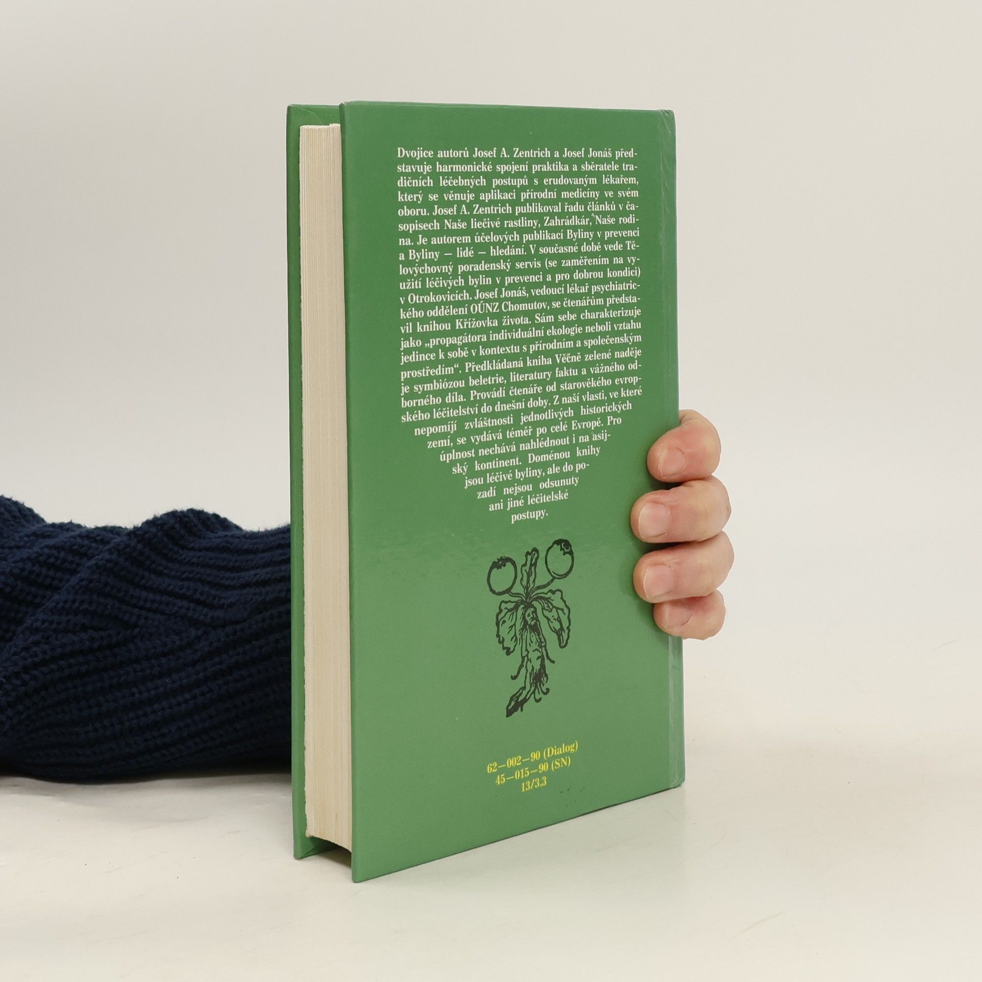 Publikace seznamuje s vývojem lidového přírodního léčitelství, s jeho způsoby, prostředky a recepty. Dotisk v r. 1990 (brož.) Dvojice autorů Josef A. Zentrich a Josef Jonáš představuje harmonické spojení praktika a sběratele tradičních léčebných postupů s erudovaným lékařem, který se věnuje aplikaci přírodní medicíny ve svém oboru. Josef A. Zentrich publikoval řadu článků v časopisech Naše liečivé rastliny, Zahrádkár, Naše rodina. Je autorem účelových publikací Byliny v prevenci a Byliny - lidé - hledání. V současné době vede Tělovýchovný poradenský servis (se zaměřením na využití léčivých bylin v prevenci a pro dobrou kondici) v Otrokovicích. Josef Jonáš, vedoucí lékař psychiatrického oddělení OÚNZ Chomutov, se čtenářům představil knihou Křížovka života. Sám sebe charakterizuje jako "progragátora individuální ekologie neboli vztahu jedince k sobě v kontextu s přírodním a společenským prostředím". Předkládaná kniha Věčně zelené naděje je symbiózou beletrie, literatury faktu a vážného odborného díla. Provádí čtenáře od starověkého evropského léčitelství do dnešní doby. Z naší vlasti, ve které nepomíjí zvláštnosti jednotlivých historických zemí, se vydává téměř po celé Evropě. pro úplnost nechává nahlédnout i a asijský kontinent. Doménou knihy jsou léčivé byliny, ale do pozadí nejsou odsunuty ani jiné léčitelské postupy.