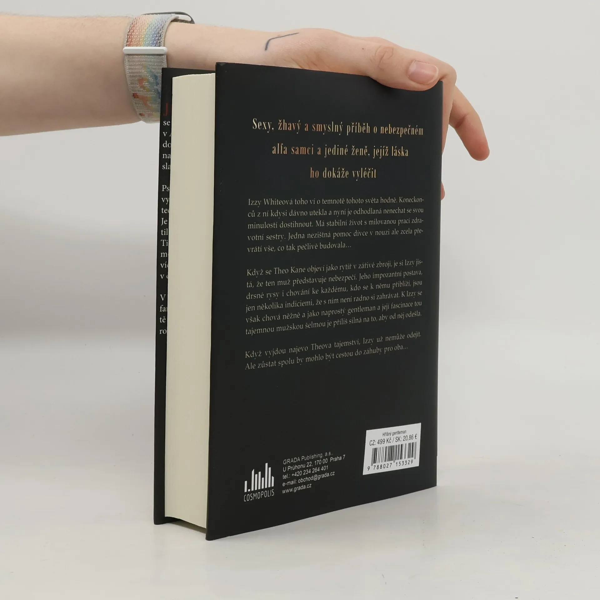 Sexy, žhavý a hříšný příběh o nebezpečném alfa samci a jediné ženě, jejíž láska ho dokáže vyléčit. Neodolatelný a nebezpečný alfa samec s tajemstvím. Křehká a zlomená žena s velkou bolestí. Ona jediná se mu dokáže přiblížit – pokud se oba dokážou vzájemně ochránit před svými démony. Izzy Whiteová toho ví o temnotě tohoto světa hodně. Koneckonců z ní kdysi dávno utekla a nyní je odhodlaná nenechat se svou minulostí dostihnout. Má stabilní život s milovanou prací zdravotní sestry. Jedna nezištná pomoc dívce v nouzi ale zcela převrátí vše, co tak pečlivě budovala…Když se Theo Kane objeví jako rytíř v zářivé zbroji, je si Izzy jistá, že ten muž představuje nebezpečí. Jeho impozantní postava, drsné rysy i chování ke každému, kdo se k němu přiblíží, jsou jen několika indiciemi, že s ním není radno si zahrávat. K Izzy se však chová něžně a jako naprostý gentleman a její fascinace tou tajemnou mužskou šelmou je příliš silná na to, aby od něj odešla. Když vyjdou najevo Theova tajemství, Izzy už nemůže odejít. Ale zůstat spolu by mohlo být cestou do záhuby pro oba…