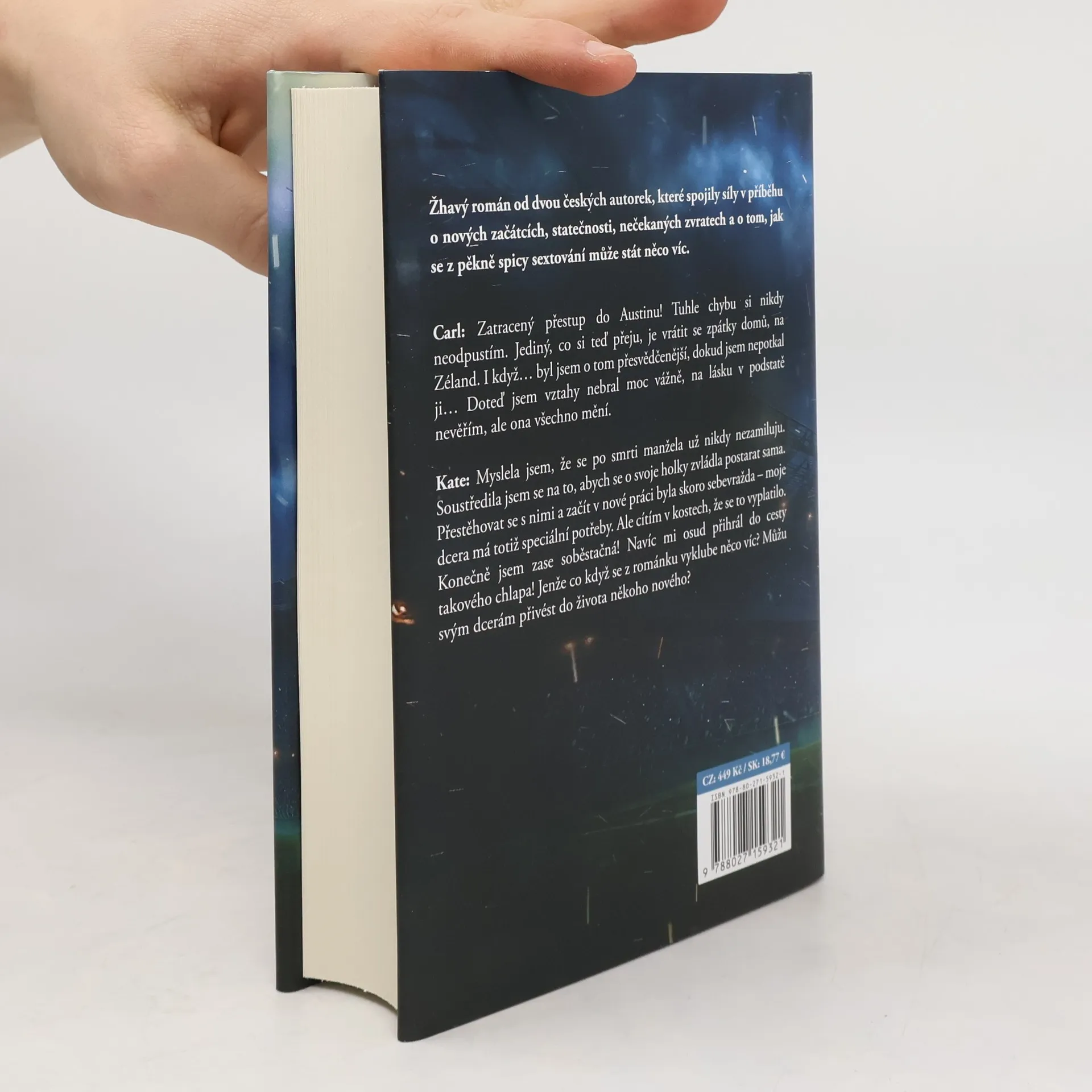 Žhavý román od dvou českých autorek, které spojily síly v příběhu o nových začátcích, statečnosti, nečekaných zvratech a o tom, jak se z pěkně spicy sextování může stát něco víc Carl: Zatracený přestup do Austinu! Tuhle chybu si nikdy neodpustím. Jediný, co si teď přeju, je vrátit se zpátky domů, na Zéland. I když… byl jsem o tom přesvědčenější, dokud jsem nepotkal ji… Doteď jsem vztahy nebral moc vážně, na lásku v podstatě nevěřím, ale ona všechno mění. Kate: Myslela jsem, že se po smrti manžela už nikdy nezamiluju. Soustředila jsem se na to, abych se o svoje holky zvládla postarat sama. Přestěhovat se s nimi a začít v nové práci byla skoro sebevražda – moje dcera má totiž speciální potřeby. Ale cítím v kostech, že se to vyplatilo. Konečně jsem zase soběstačná! Navíc mi osud přihrál do cesty takového chlapa! Jenže co když se z románku vyklube něco víc? Můžu svým dcerám přivést do života někoho nového?