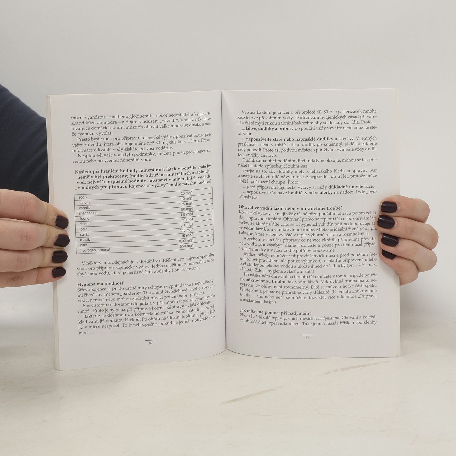 Informace pro maminky o kojení a krmení dětí v prvním roce života. Srozumitelně,přehledně,stručně a rozumně napsané rady a informace pro maminky kojenců shrnují hlavní zásady životosprávy dětí do jednoho roku života.Kniha je rozdělena do tří částí - první se zabývá kojením,jeho zásadami a režimem kojených miminek.Druhá část je věnována umělé výživě podávané lahví a třetí přikrmování dítěte (kojeného i nekojeného) od 5.měsíce života