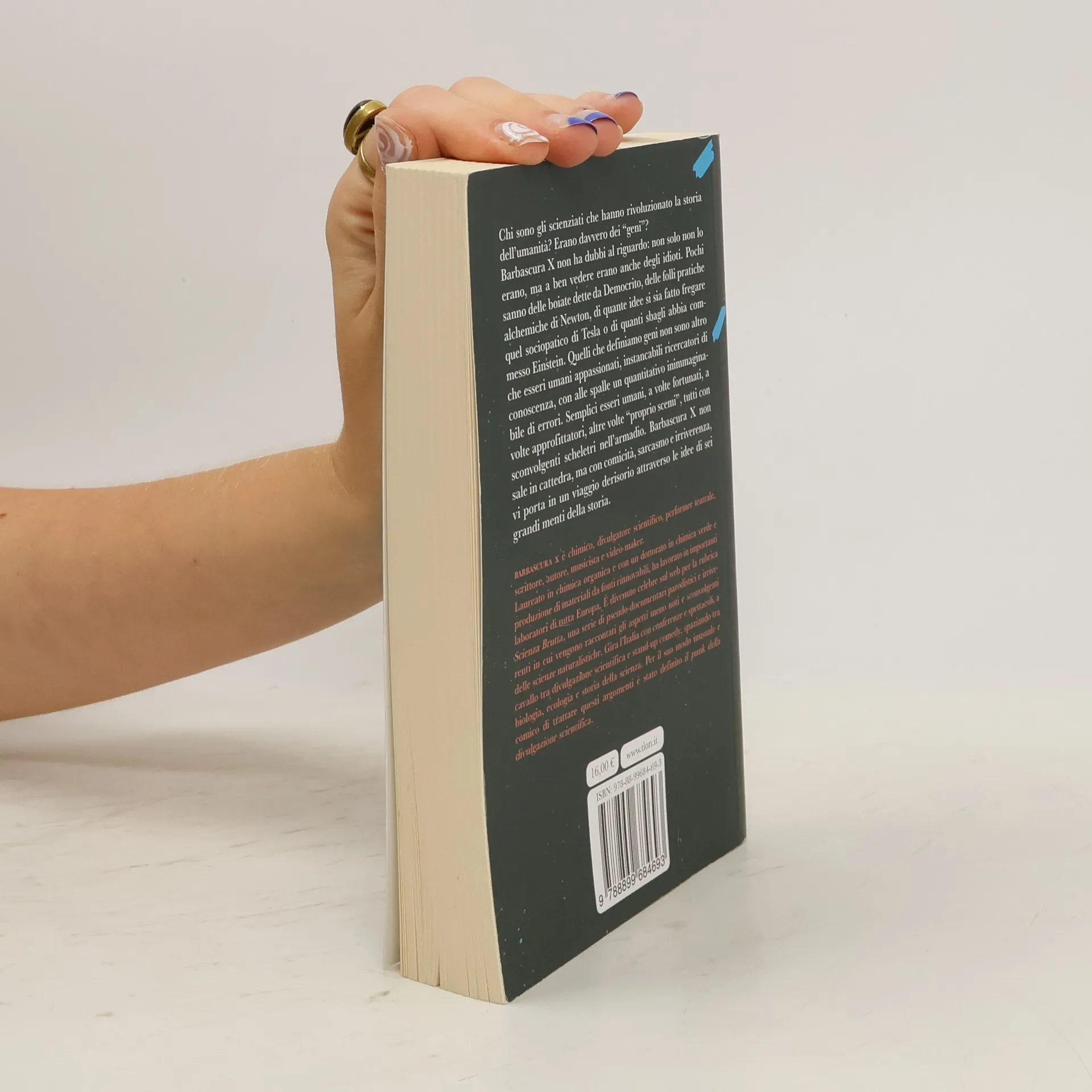 Quali sono le menti che hanno rivoluzionato la storia dell’essere umano? Erano davvero dei “geni”? Barbascura X non ha dubbi a riguardo: non solo non lo erano, ma a ben vedere erano degli idioti. Pochi sanno delle boiate dette da Democrito, delle folli pratiche alchemiche di Newton, di quante idee si sia fatto fregare quel sociopatico di Tesla o di quanti sbagli abbia commesso persino Einstein. Quelli che definiamo geni non sono altro che esseri umani appassionati, instancabili ricercatori di conoscenza, con alle spalle un quantitativo inimmaginabile di errori. Semplici esseri umani, a volte fortunati, a volte approfittatori, altre volte “proprio scemi”, tutti con sconvolgenti scheletri nell’armadio. Barbascura X non sale in cattedra, ma con comicità, sarcasmo ed irriverenza, vi porta in un viaggio derisorio attraverso le idee di sei grandi menti della storia.