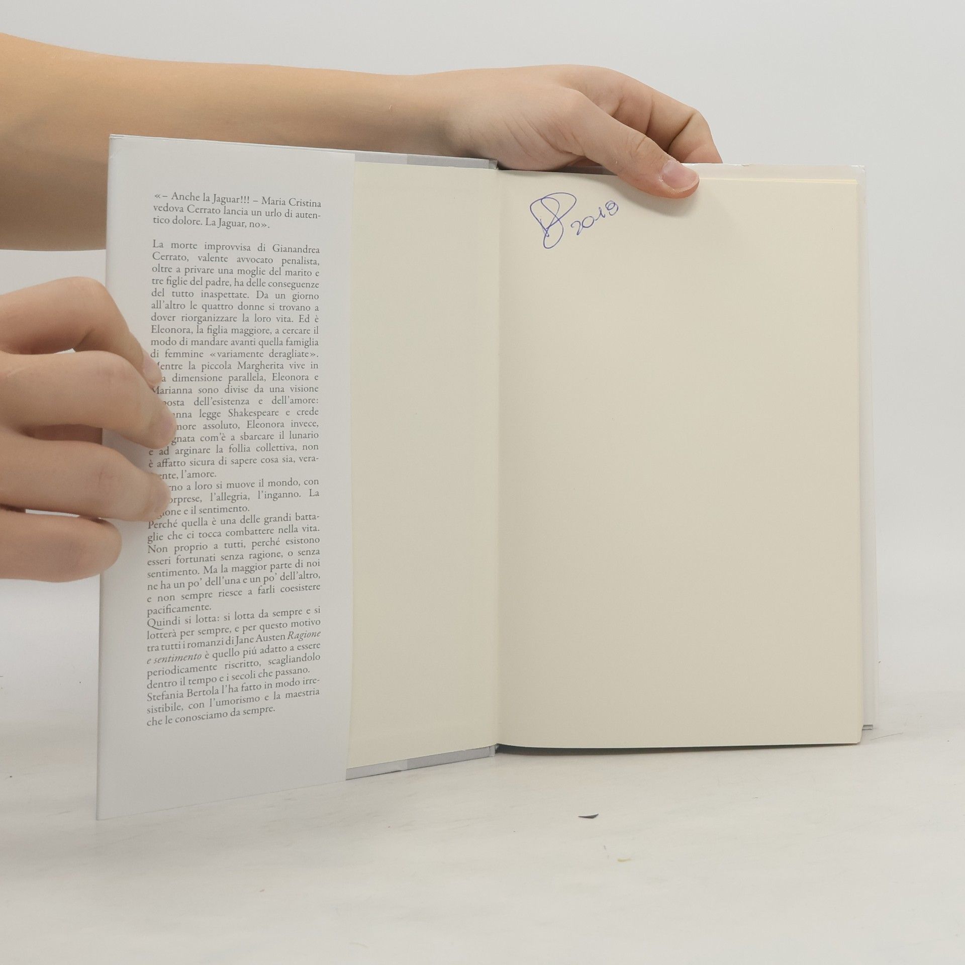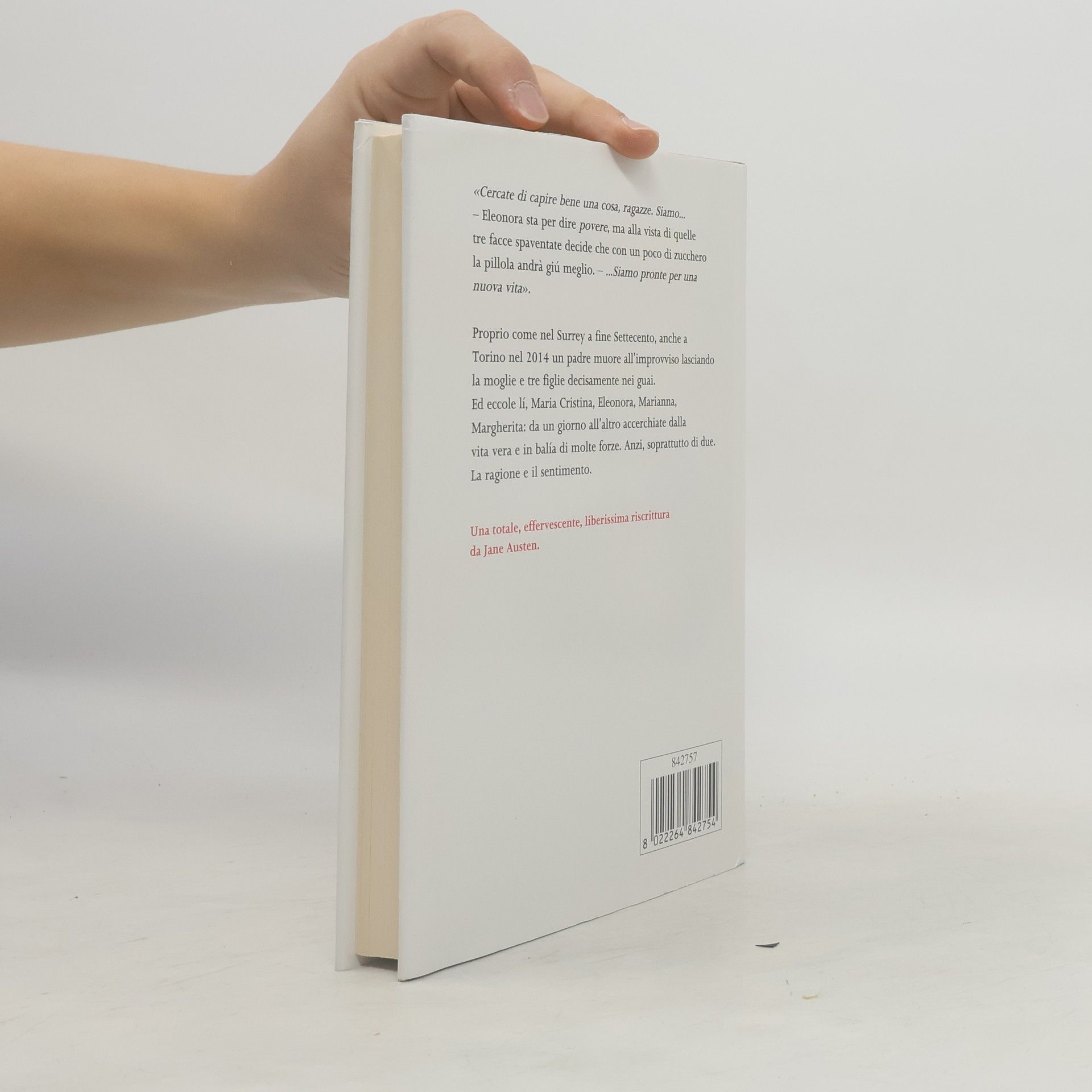La morte improvvisa di Gianandrea Cerrato, valente avvocato penalista, oltre a privare una moglie del marito e tre figlie del padre, ha delle conseguenze del tutto inaspettate. Da un giorno all'altro le quattro donne si trovano a dover riorganizzare la loro vita. Ed è Eleonora, la figlia maggiore, a cercare il modo di mandare avanti quella famiglia di femmine «variamente deragliate ». Mentre la piccola Margherita vive in una dimensione parallela, Eleonora e Marianna sono divise da una visione opposta dell'esistenza e dell'amore: Marianna legge Shakespeare e crede nell'amore assoluto, Eleonora invece, impegnata com'è a sbarcare il lunario e ad arginare la follia collettiva, non è affatto sicura di sapere cosa sia, veramente, l'amore. Intorno a loro si muove il mondo, con le sorprese, l'allegria, l'inganno. La ragione e il sentimento. Perché quella è una delle grandi battaglie che ci tocca combattere nella vita. Non proprio a tutti, perché esistono esseri fortunati senza ragione, o senza sentimento. Ma la maggior parte di noi ne ha un po' dell'una e un po' dell'altro, e non sempre riesce a farli coesistere pacificamente. Quindi si lotta: si lotta da sempre e si lotterà per sempre, e per questo motivo tra tutti i romanzi di Jane Austen Ragione e sentimento è quello più adatto a essere periodicamente riscritto, scagliandolo dentro il tempo e i secoli che passano. Stefania Bertola l'ha fatto in modo irresistibile, con l'umorismo e la maestria che le conosciamo da sempre.