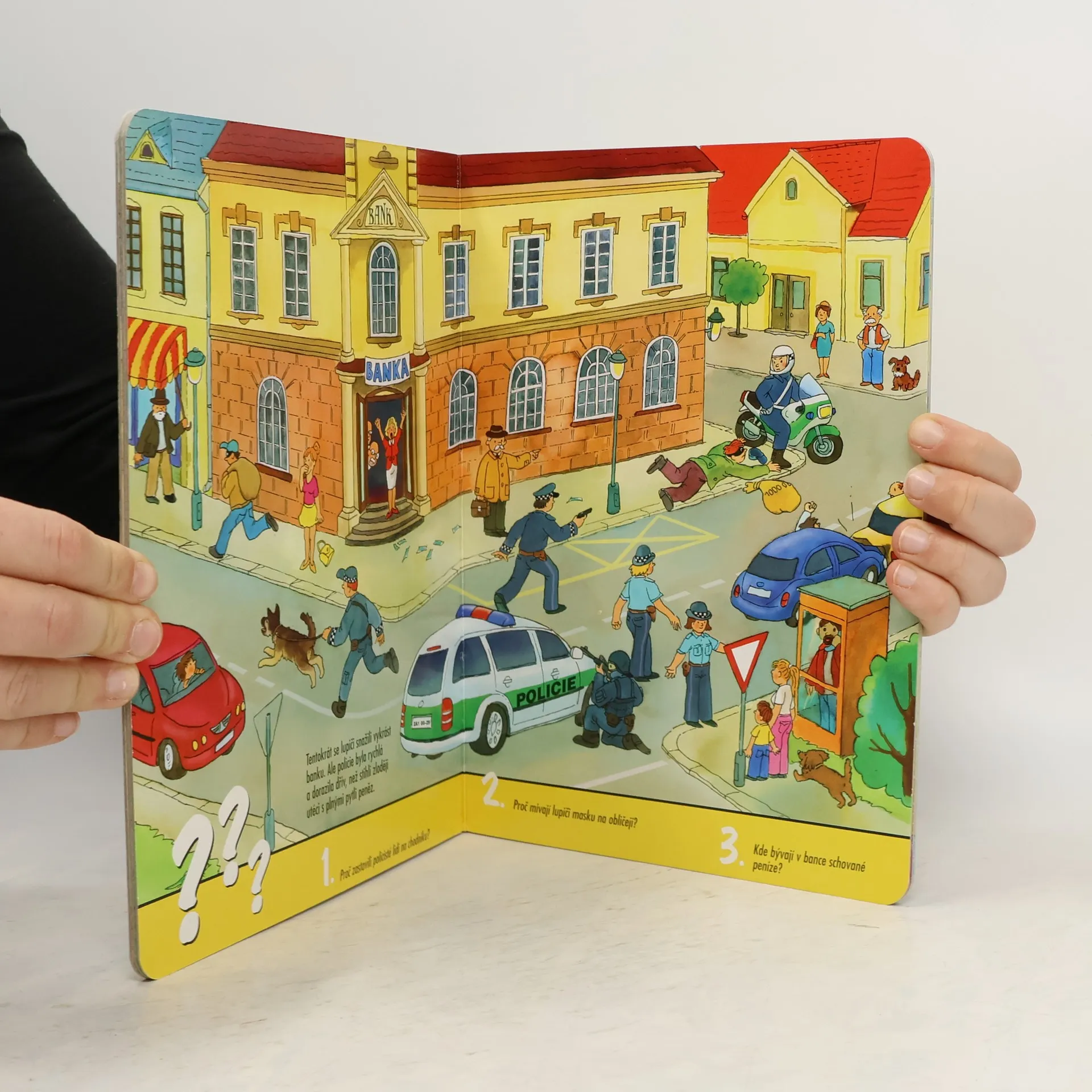 Na koho se obrátíme, když se stane dopravní nehoda nebo někoho zloděj okrade? Jak pomáhají policistům psi? Podle čeho poznáme policejní auto? Všechno dětem názorně ukáže obrázkové leporelo, které je plné jednoduchých i náročnějších úkolů.