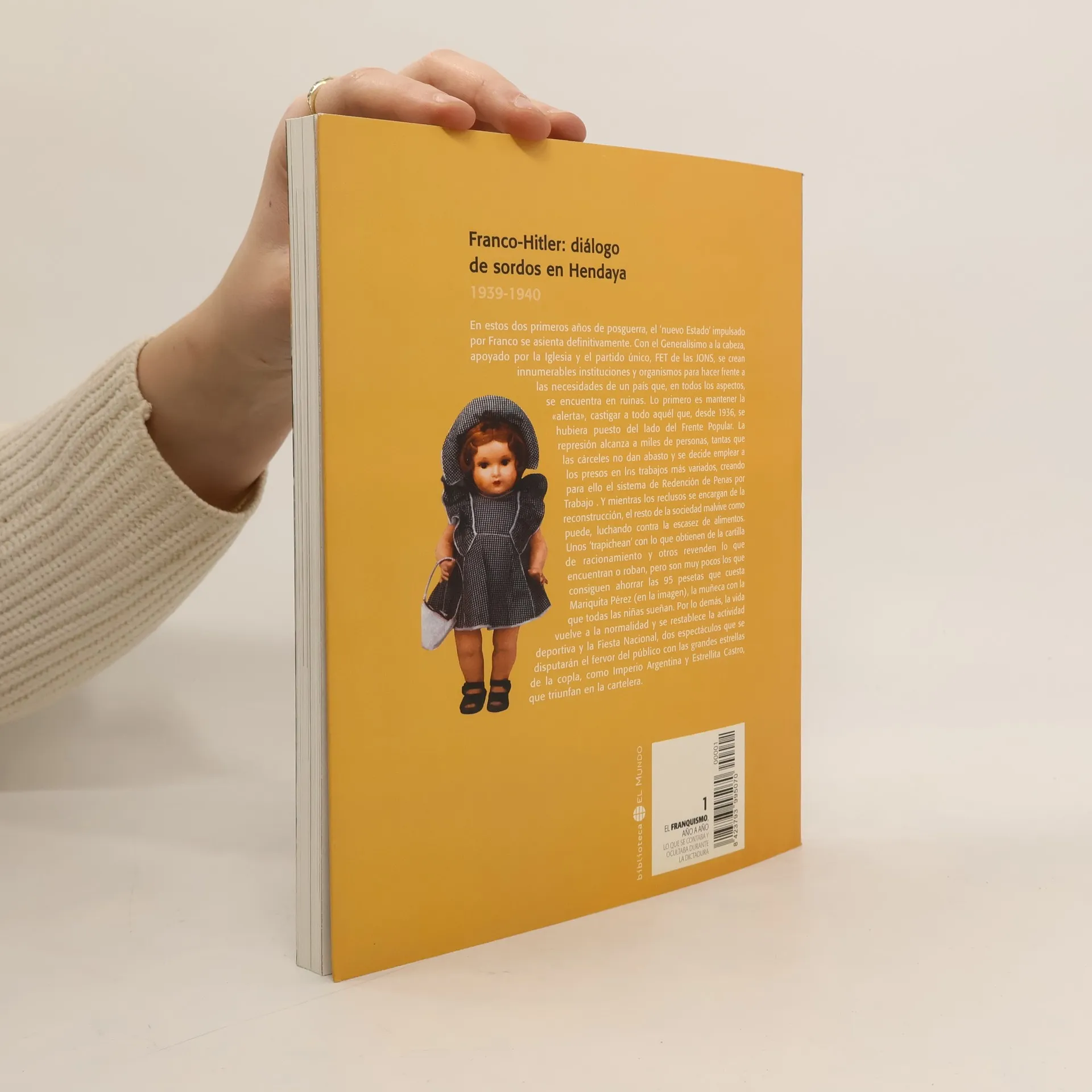 1939-1940En estos dos primeros años de posguerra, el 'nuevo Estado' impulsado por Franco se asienta definitivamente. Con el Generalísimo a la cabeza, apoyado por la Iglesia y el partido único, FET de las JONS, se crean innumerables instituciones y organimos para hacer frente a las necesidades de un país que, en todos los aspectos, se encuentra en ruinas. Lo primero es mantener la "alerta", castigar a todo aquél que, desde 1936, se hubiera puesto del lado del Frente Popular. la represión alcanza a miles de personas, tantas que las cárceles no dan abasto y se decide emplear a los presos en los trabajos más variados, creando para ello el sistema de Redenciónde Penas por Trabajo. Y mientras los reclusos se encargan de la reconstrucción, el resto de la sociedad malvive como puede, lucahndo contra la escasez de alimentos. Unos 'trapichean' con lo que obtienen de la cartilla de racionamiento y otros revenden lo que encuentran o roban, pero son muy pocos los que consiguen ahorrar las 95 pesetas que cuesta Mariquita Pérez, la muñeca con la que todas las niñas sueñan. Por lo demás, la vida vuelve a la normalidad y se restablece la actividad deportiva y la Fiesta Nacional, dos espectáculos que se disputarán el fervor del público con las grandes estrellas, como Imperio Argentina y Estrellita Castro, que triunfan en la cartelera.
