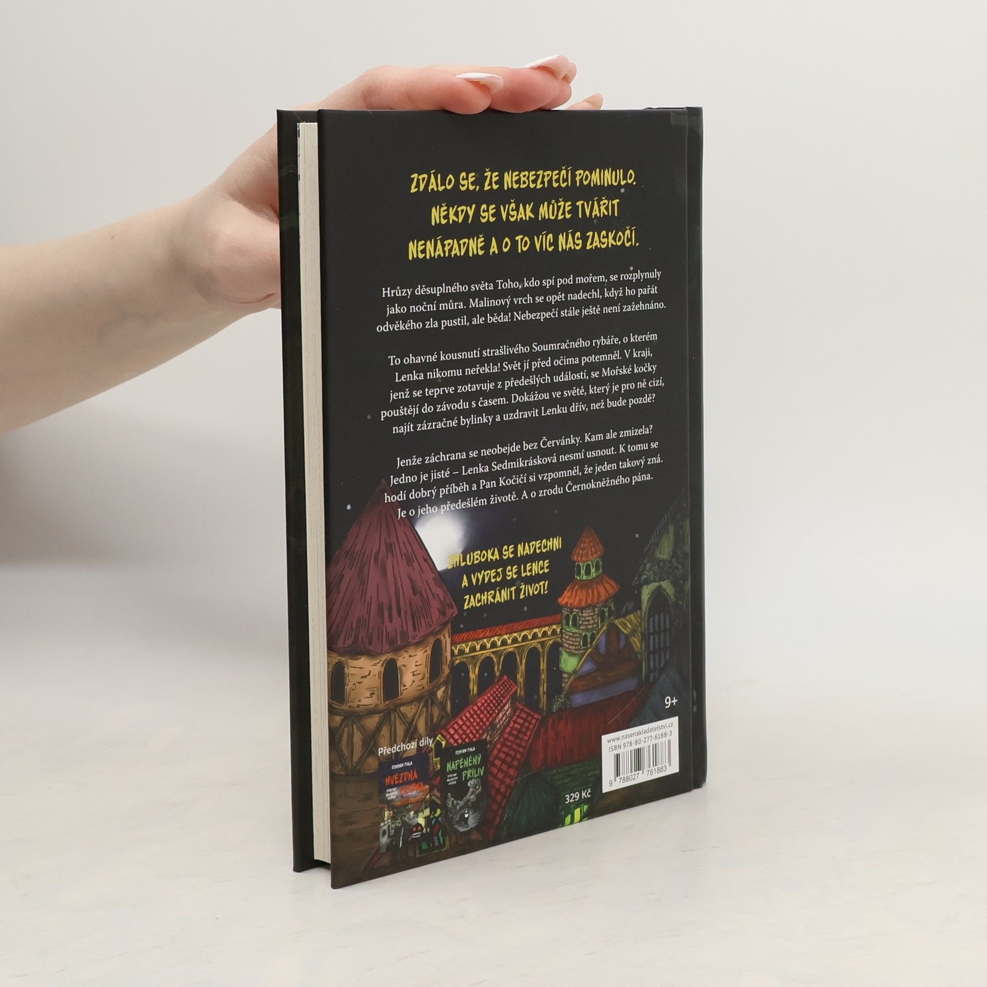 Brána hrozivého, pokrouceného světa Toho, kdo spí pod mořem, je nadobro uzavřena. Malinový vrch se opět nadechl, když ho strašlivý pařát odvěkého zla pustil a krajina se začala uzdravovat. Hrůzy děsuplného světa spícího pradávného boha se rozplynuly jako noční můra, ale běda! Nebezpečí stále ještě není konec! To ohavné kousnutí strašlivého Soumračného rybáře, o kterém Lenka nikomu neřekla! Svět jí před očima potemněl a Mořským kočkám zbývá jediné – najít v tomto cizím světě bylinky, s jejichž pomocí se snad podaří Lenku uzdravit, než bude pozdě. Jenže to se neobejde bez Červánky. Kam ale zmizela? Jedno je jisté – Malinový vrch je daleko a Lenka Sedmikrásková nesmí usnout. K tomu se hodí dobrý příběh a Pan Kočičí si vzpomněl, že jeden takový zná. Je o jeho předešlém životě. A o zrodu Černokněžného pána.