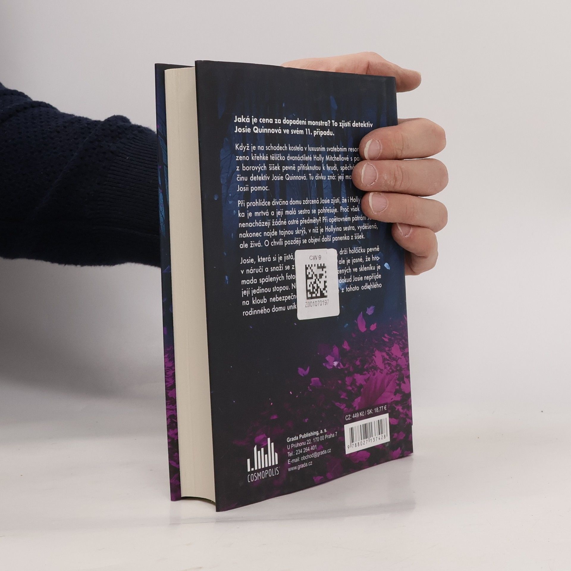 Když je na schodech kostela v luxusním svatebním resortu nalezeno křehké tělíčko dvanáctileté Holly Mitchellové s panenkou z borových šišek pevně přitisknutou k hrudi, spěchá na místo činu detektiv Josie Quinnová. Tu dívku zná: její matka nabídla Josii pomoc. Při prohlídce dívčina domu Josie zdrceně zjistí, že i Hollyina matka je mrtvá a její malá sestra se pohřešuje. Proč však v domě nenacházejí žádné ostré předměty? Při opětovném pátrání Josie nakonec najde tajnou skrýš, v níž je Hollyina sestra, vyděšená, ale živá. O chvíli později se objeví další panenka z šišek. Josie, která si je jistá, že vrah je nablízku, drží holčičku pevně v náručí a snaží se z ní dostat odpovědi, ale je jasné, že hromada spálených fotografií a dopisů nalezených ve skleníku je její jedinou stopou. Nikdo není v bezpečí, dokud Josie nepřijde na kloub nebezpečnému tajemství, které z tohoto odlehlého rodinného domu uniklo.