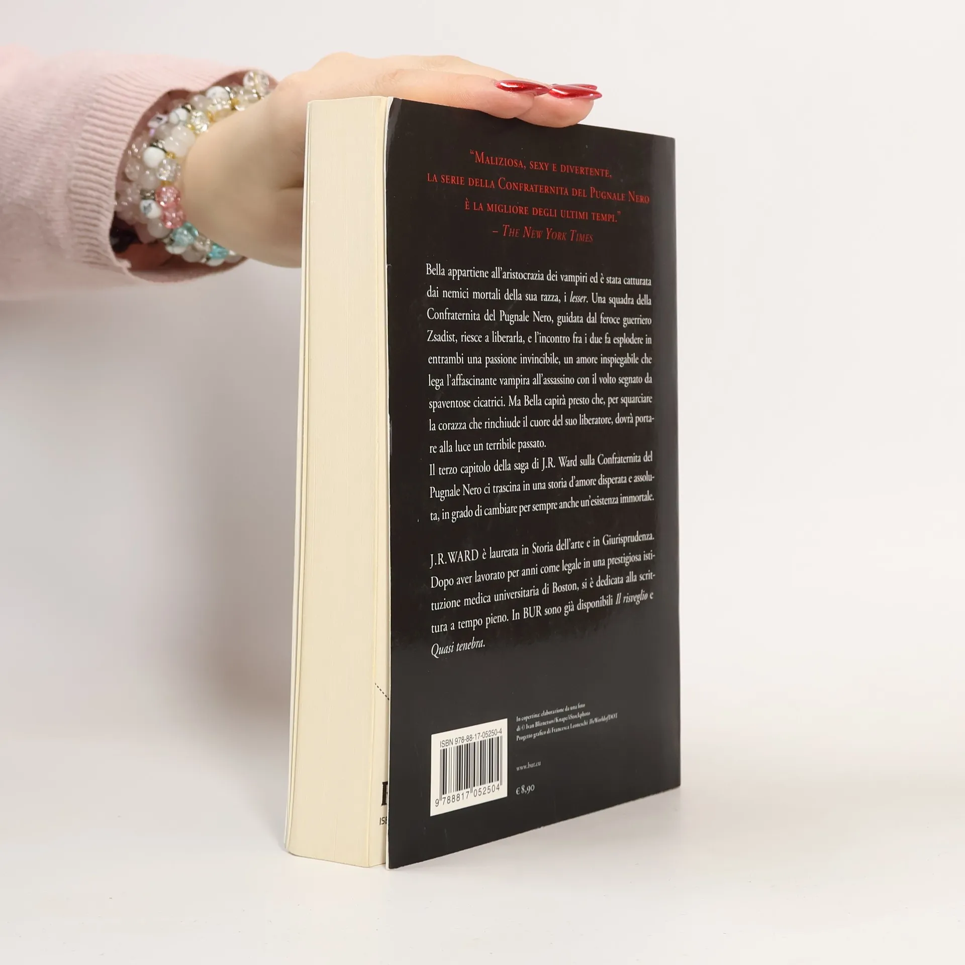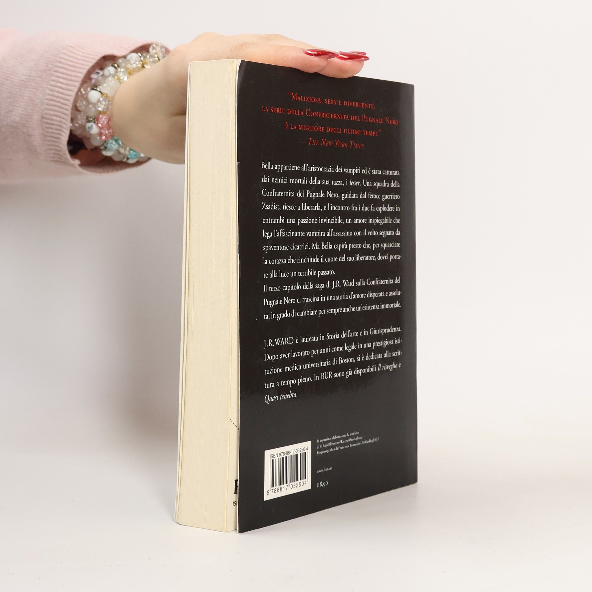In the shadows of the night in Caldwell, New York, there’s a deadly war raging between vampires and their slayers. And there exists a secret band of brothers like no other - six vampire warriors, defenders of their race. Of these, Zsadist is the most terrifying member of the Black Dagger Brotherhood. A former blood slave, the vampire Zsadist still bears the scars from a past filled with suffering and humiliation. Renowned for his unquenchable fury and sinister deeds, he is a savage feared by humans and vampires alike. Anger is his only companion, and terror is his only passion—until he rescues a beautiful aristocrat from the evil Lessening Society. Bella is instantly entranced by the seething power Zsadist possesses. But even as their desire for one another begins to overtake them both, Zsadist’s thirst for vengeance against Bella’s tormentors drives him to the brink of madness. Now, Bella must help her lover overcome the wounds of his tortured past, and find a future with her…