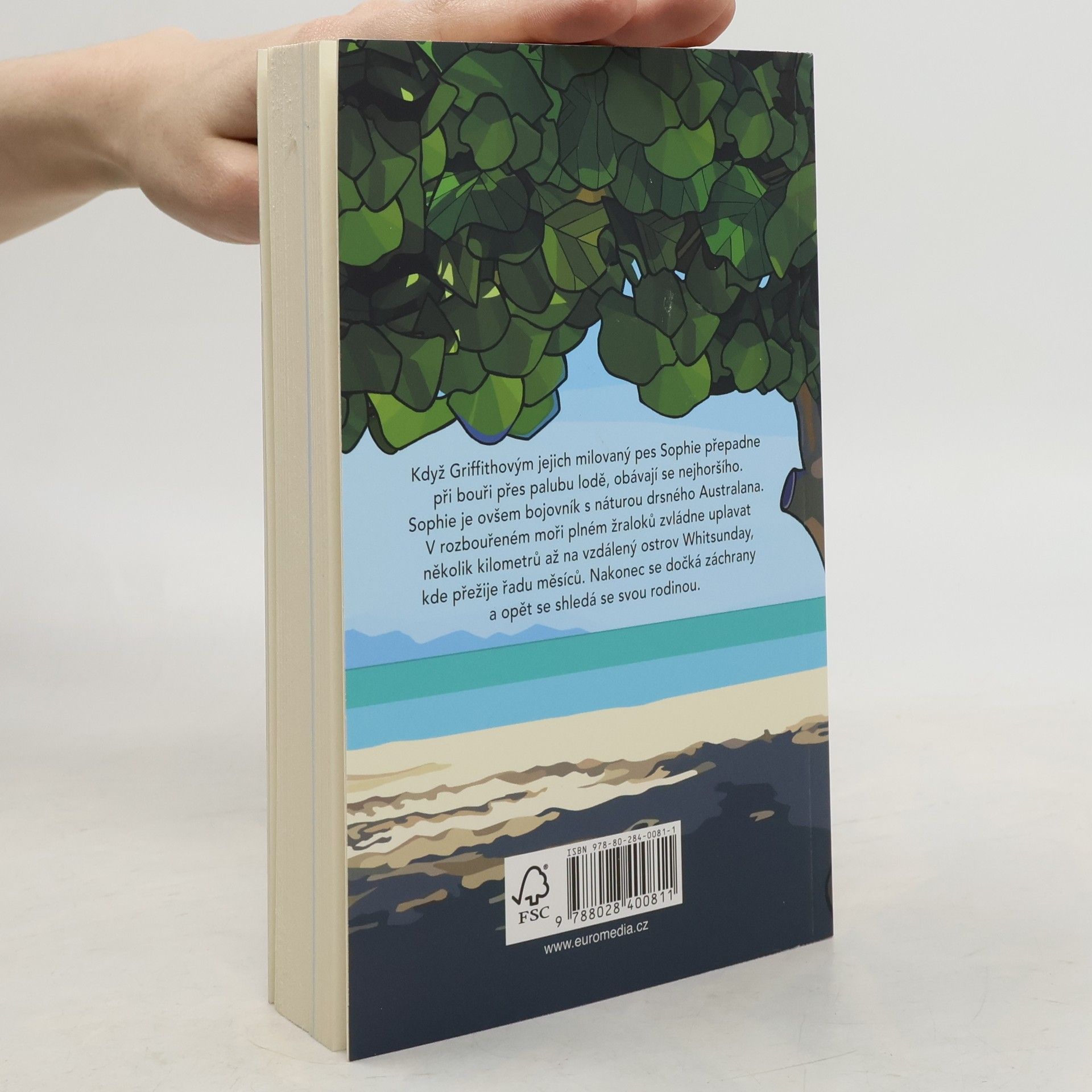 Když rodině Griffithových přepadne při bouři jejich milovaný pes Sophie přes palubu lodě, obávají se toho nejhoršího. Sophie je ovšem bojovník s náturou drsného „Australana“. Zvládne uplavat v rozbouřeném moři plném žraloků několik kilometrů až na vzdálený ostrov Whitsunday, kde přežije řadu měsíců a shodou náhod se nakonec setká se svojí „rodinou“. Kniha popisující skutečnou událost potěší všechny milovníky zvířat a čtenáře, kteří hledají inspirující příběh plný odvahy, loajality a přátelství.