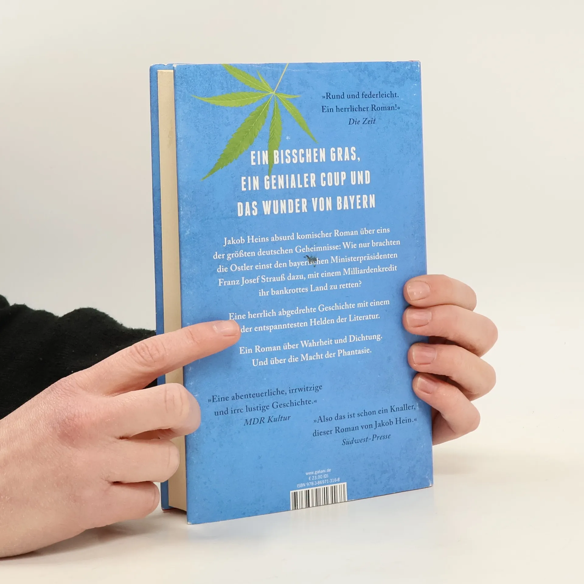 Ein bisschen Gras, ein genialer Coup und das Wunder von Bayern – Jakob Heins absurd komischer Roman über eins der größten deutschen Geheimnisse: Wie nur brachten die Ostler einst den Bayerischen Ministerpräsidenten Franz Josef Strauß dazu, mit einem Milliardenkredit ihr bankrottes Land zu retten? Eine herrlich abgedrehte Geschichte mit einem der entspanntesten Helden der Literatur. Nicht im Traum wäre sein Chef darauf gekommen, dass ausgerechnet Grischa, dieser schüchterne Assistent der Plankommission, zu Subversion neigt und einen – zugegeben – ziemlich genialen Plan ausheckt, wie ihr maroder Laden an eine neue, überraschend gut sprudelnde Finanzquelle gelangt. Wobei ‚Laden‘ in diesem Fall für ein ganzes Land steht. Vielleicht lag es daran, dass Grischa einen etwas eigenwilligen Filmgeschmack hat, in dem sich amerikanische Drogenmafia-Thriller mit sozialistischen Heldenepen kreuzen? Jedenfalls: Grischas Chef kommt aus dem Staunen nicht raus, und mit ihm staunen alle möglichen greisen Minister im Zentralkomitee. Am meisten staunt allerdings kurz darauf der Polizeichef von Westberlin, als sich am Grenzübergang Invalidenstraße tumultartige Szenen abspielen, und zwar auf der falschen (!) Seite. Hunderte junge Leute wollen nach drüben, in den Osten, als wäre Magie im Spiel. Als die Regierung in Bonn Wind davon bekommt, wird die Lage brenzlig. Doch da macht der Osten dem Westen ein Angebot, das er nicht ablehnen kann!