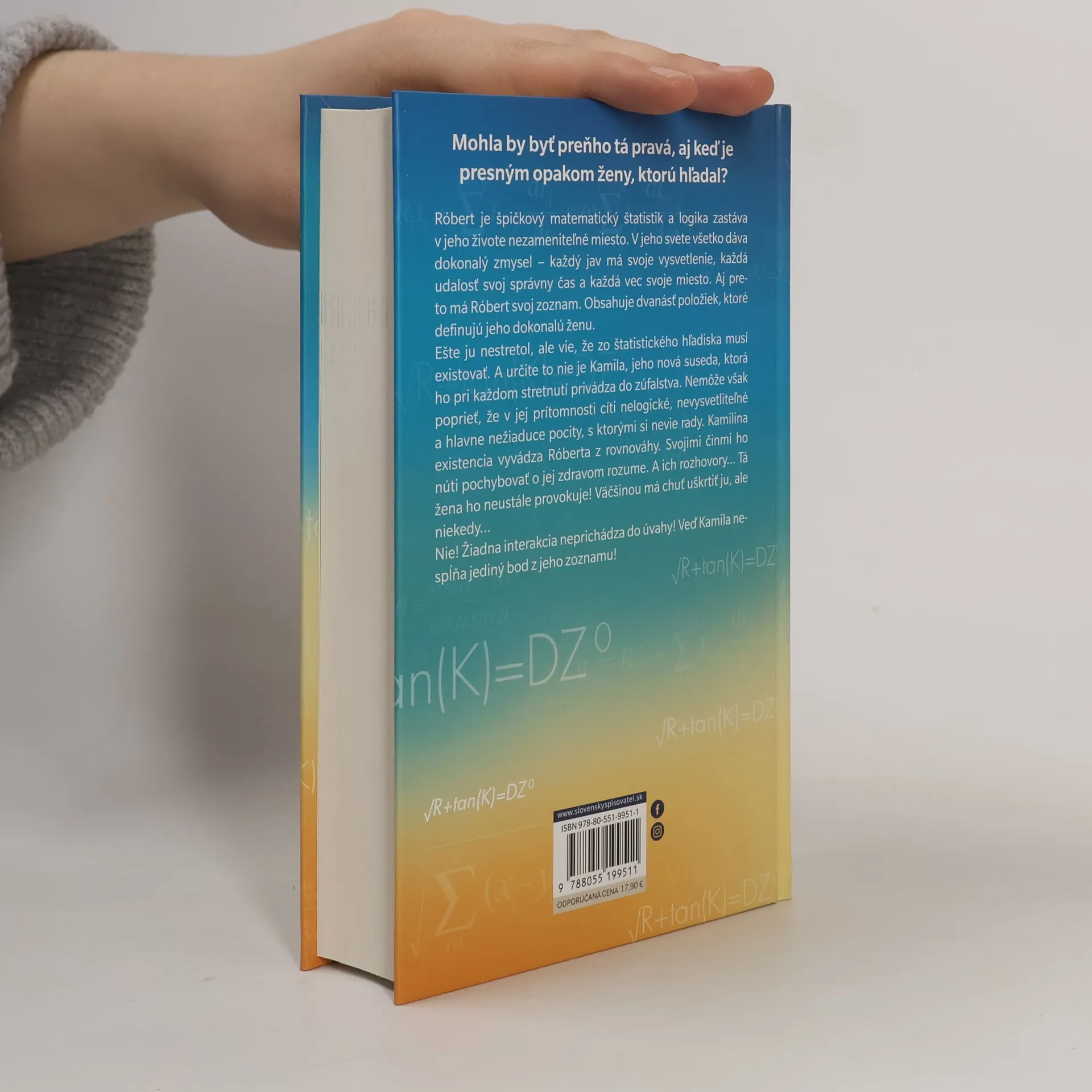 Mohla by byť preňho tá pravá, aj keď je presným opakom ženy, ktorú hľadal? Róbert je špičkový štatistik a logika zastáva v jeho živote nezameniteľné miesto. V jeho svete všetko dáva dokonalý zmysel – každý jav má svoje vysvetlenie, každá udalosť svoj správny čas a každá vec svoje miesto. Aj preto má Róbert svoj zoznam. Obsahuje dvanásť položiek, ktoré definujú jeho dokonalú ženu. Ešte ju nestretol, ale vie, že zo štatistického hľadiska musí existovať. A určite to nie je Kamila, jeho nová suseda, ktorá ho pri každom stretnutí privádza do zúfalstva. Nemôže však poprieť, že v jej prítomnosti cíti nelogické, nevysvetliteľné a hlavne nežiadúce pocity, s ktorými si nevie rady. Kamilina existencia vyvádza Róberta z rovnováhy. Svojimi činmi ho núti pochybovať o jej zdravom rozume. A jej vyjadrovanie... tá žena ho neustále provokuje! Väčšinou má chuť uškrtiť ju, ale niekedy... Nie! Žiadna interakcia neprichádza do úvahy! Veď Kamila nespĺňa jediný bod z jeho zoznamu!